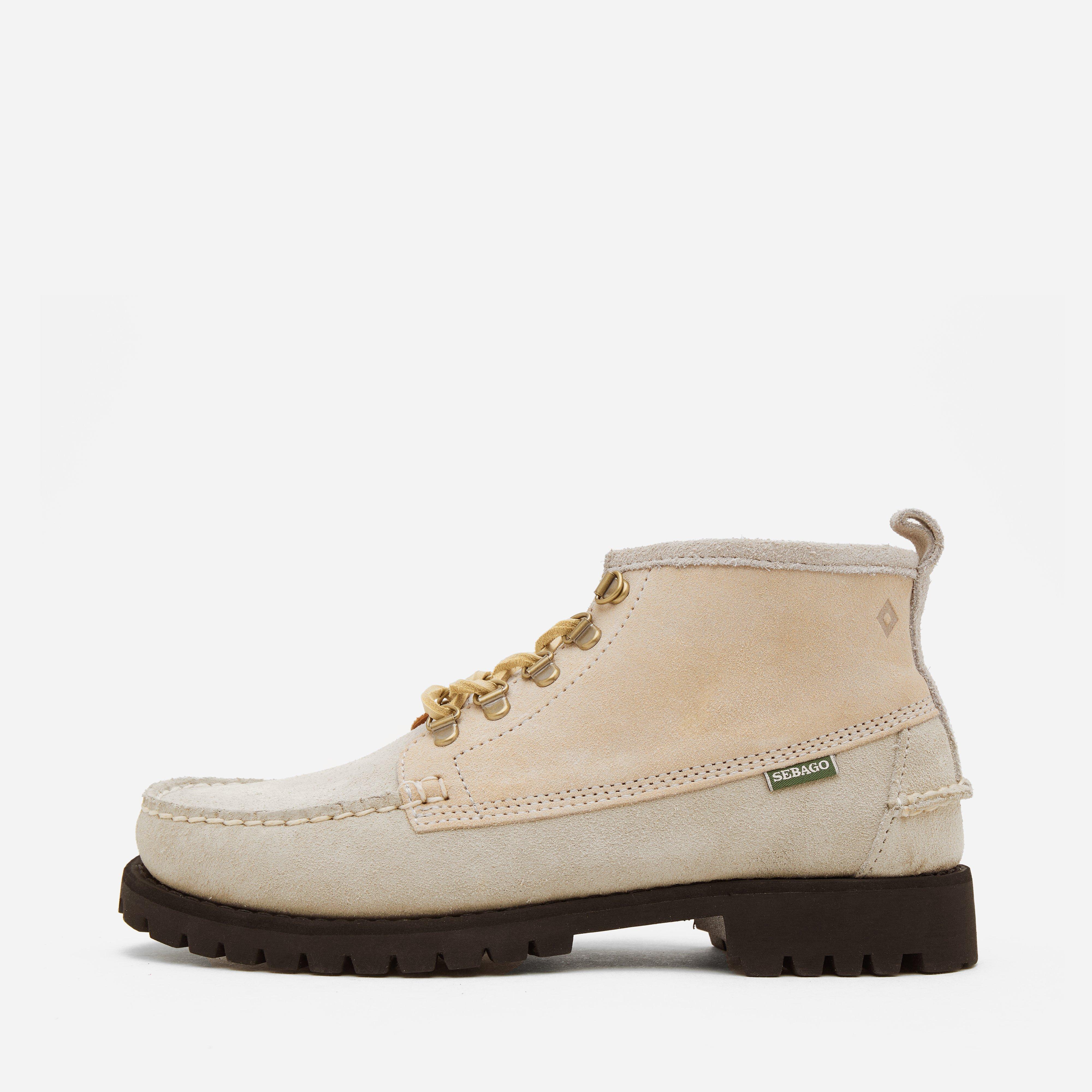 Introducing two moccasin Deer Boots crafted with leather and suede in 'Black' and 'Off White'. Hand-sewn and accented with hiking-inspired details like D-ring lacing and a gum commando sole for grip. Off White - Suede upper, rubber sole - Leather lining - D-ring laces - Heel tab.