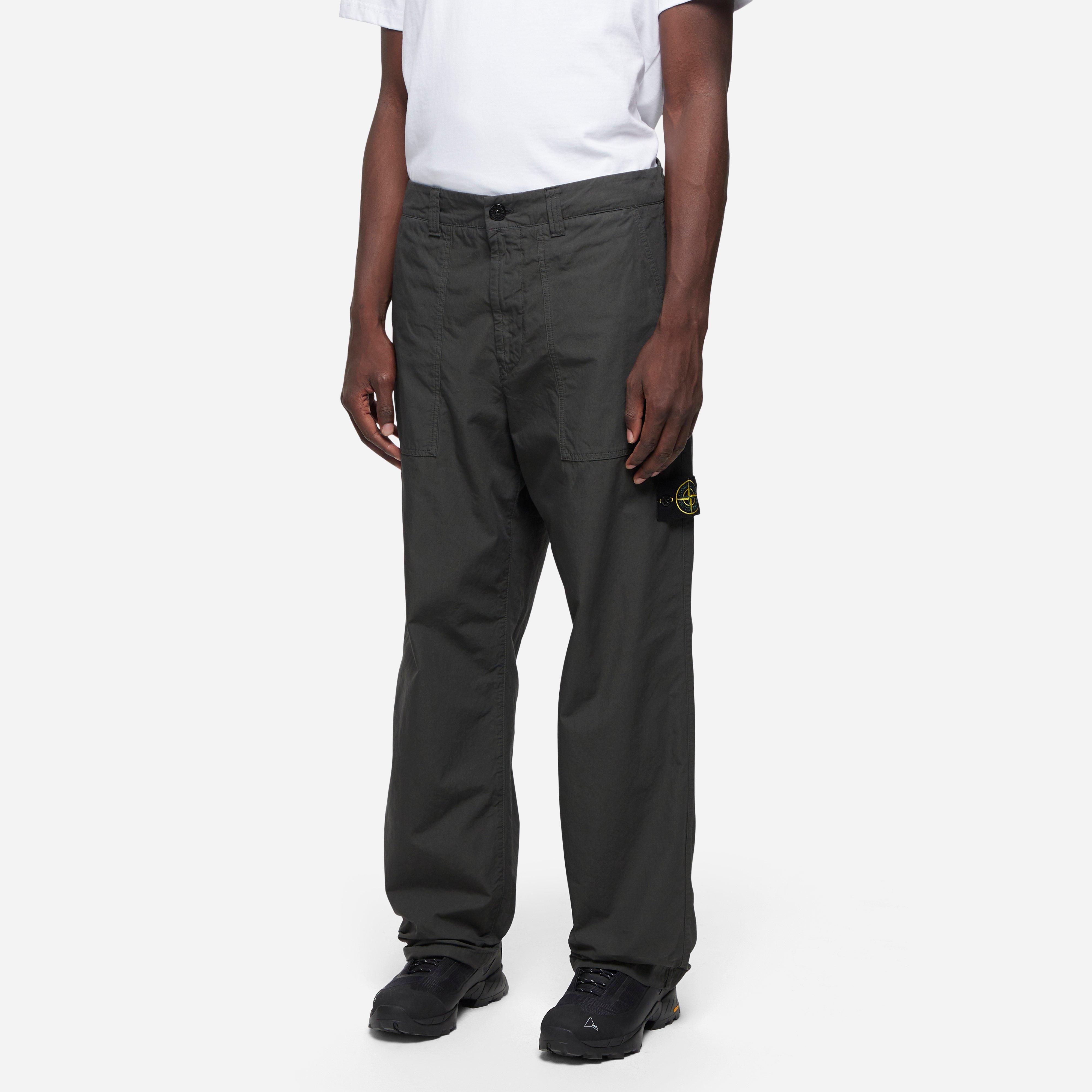 The Fatigue Trousers are composed of canvas weave cotton. Grey – 100% cotton – Slant hand pockets – Back snap pocket – Garment dyed – Removeable brand patch – Made in Romania.