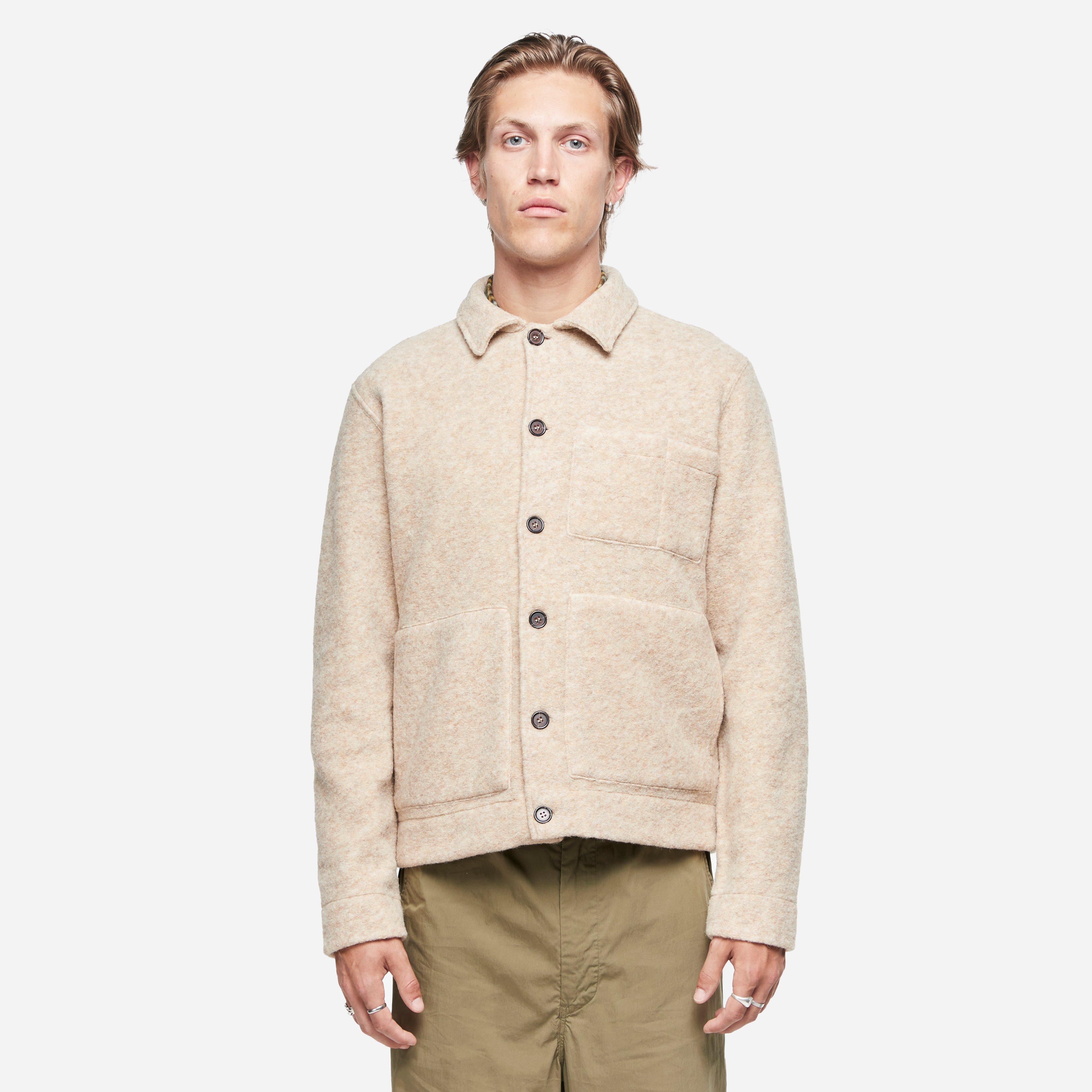Grey - 65% wool, 35% recycled polyester - Standard collar - Button closure - Model is 6'2.5" and wears a size medium.