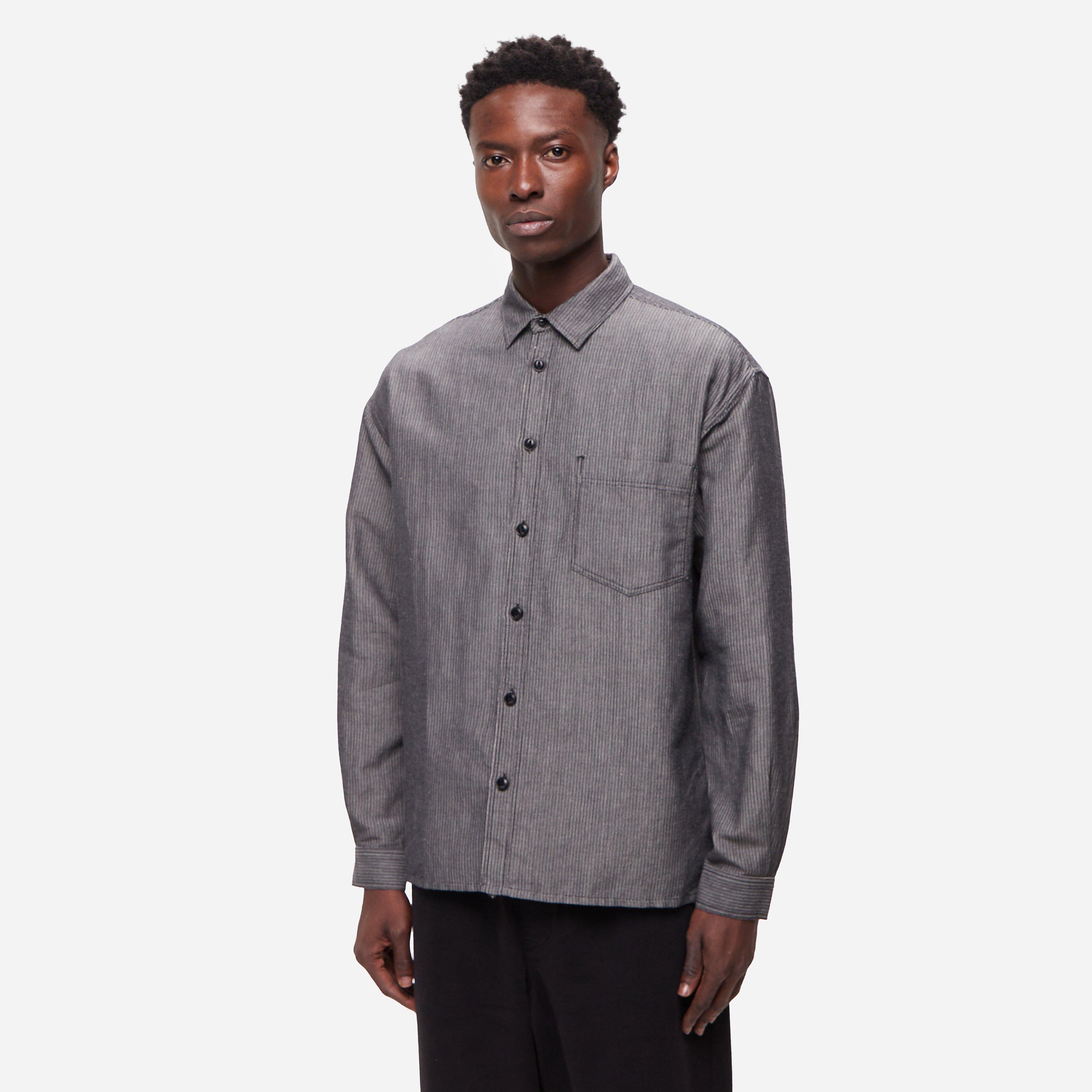 Grey - 36% cotton, 34% linen, 30% organic cotton - Chest patch pocket - Corozo button closure - Garment washed - Lapped style seam construction - Model is 6'2" and wears a size medium.
