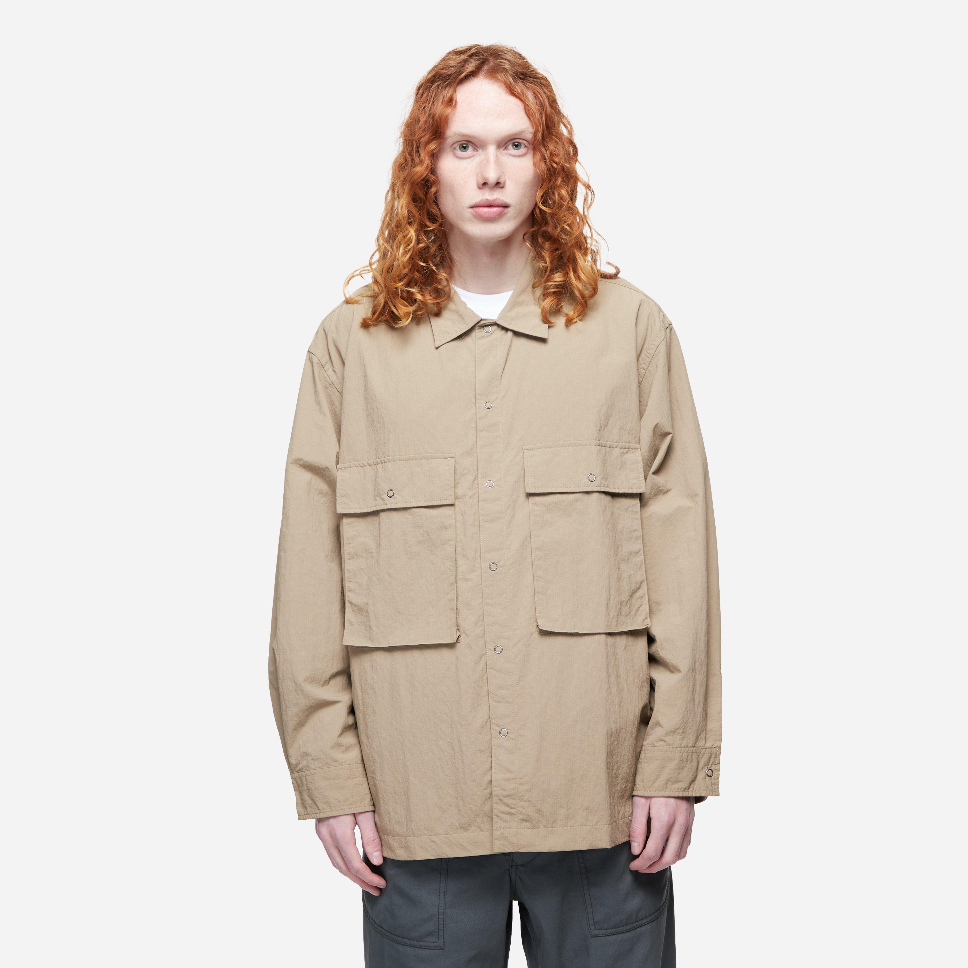 The Ivan Shirt arrives with a durable nylon ripstop cut to a boxy fit. Khaki - 100% polyester - Made in Japan - Patch pockets - Snap closure - Model is 6'1'' and wears a size medium.