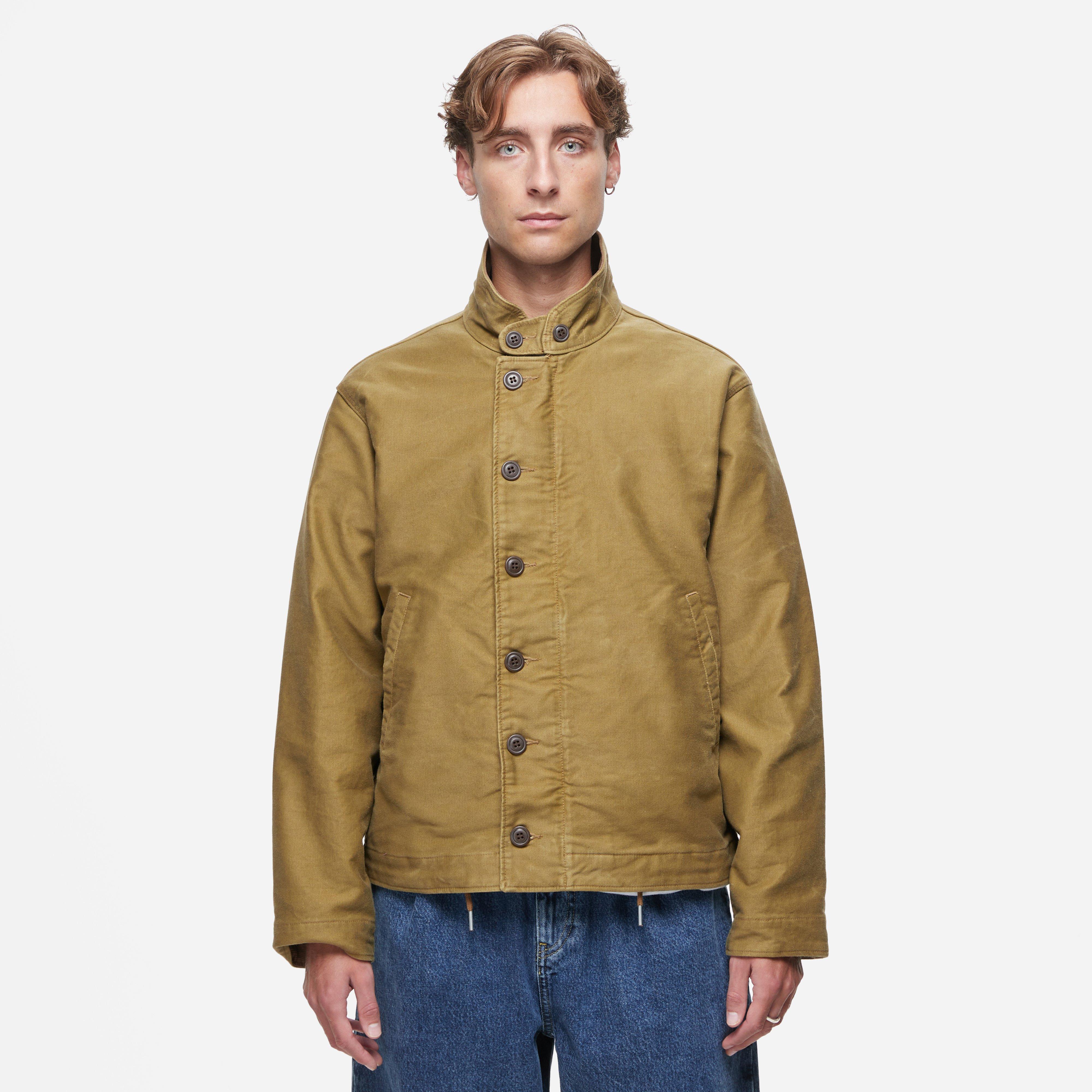 Khaki – 100% cotton – Corduroy collar – Hand pockets – Button closures – Sateen front lining – Pigment coated – Model is 6’2’’ and wears a size medium.