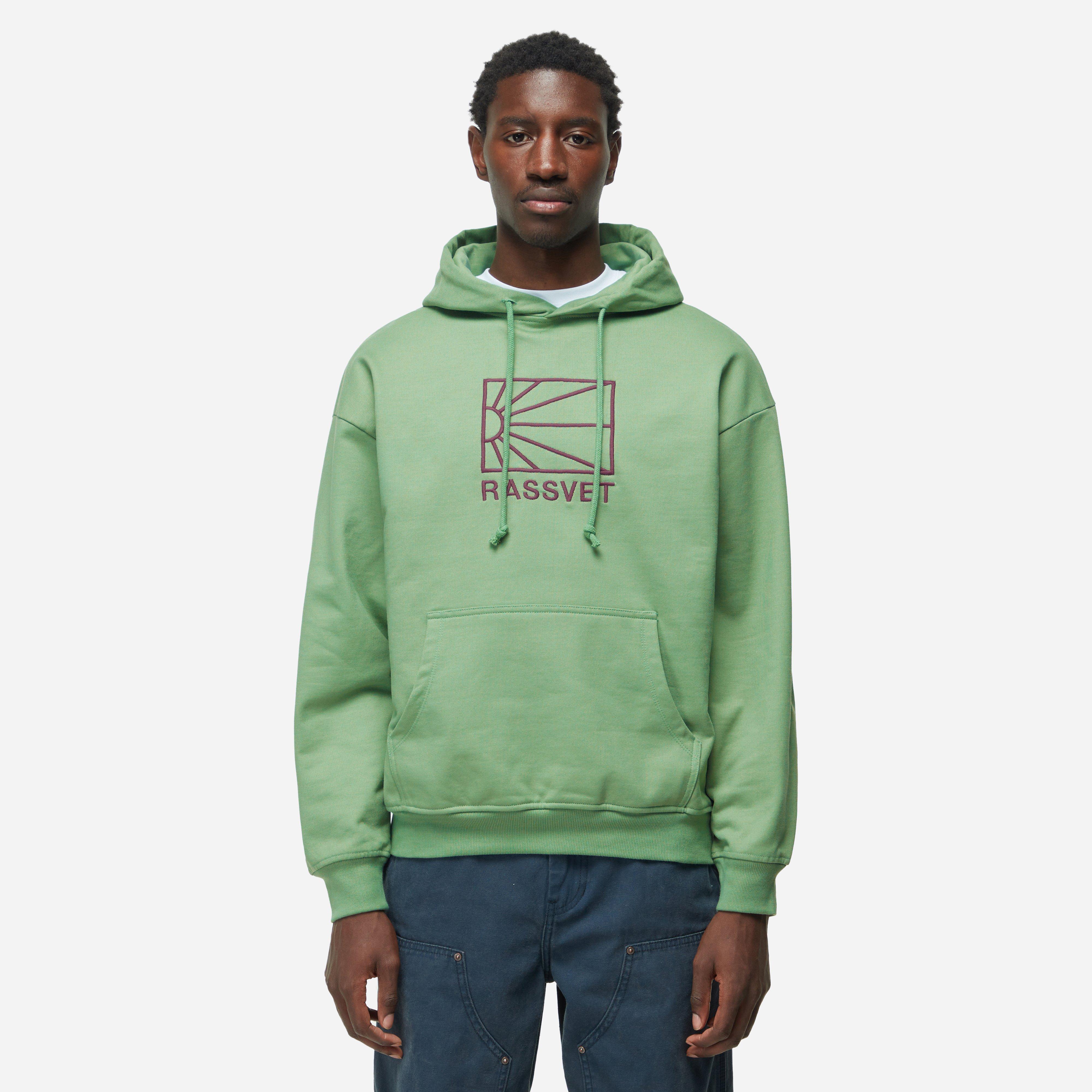 Green - 100% cotton - Embroidered logo - Ribbed cuffs and hem - Pouch pocket - Model is 6'1" and wears a size medium.