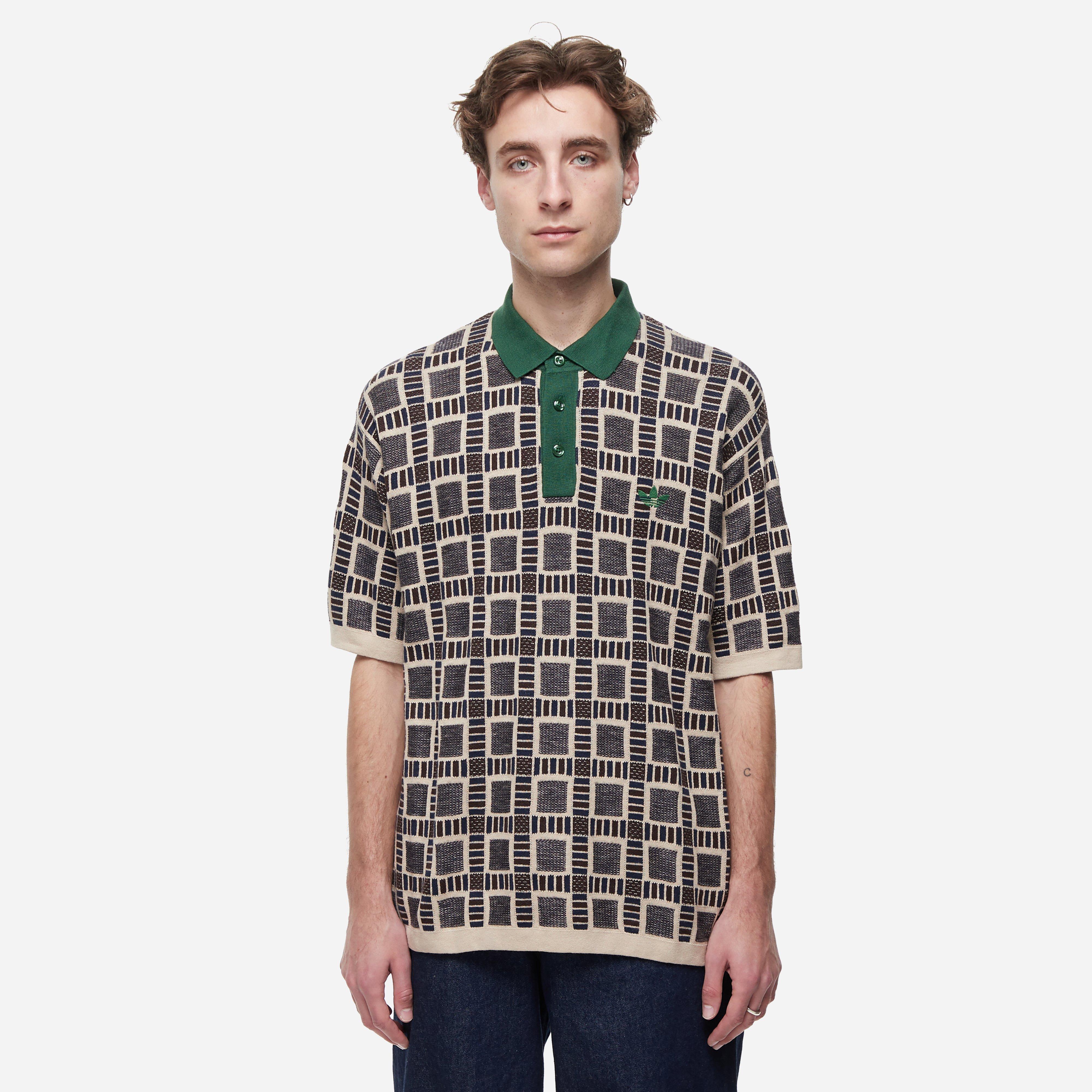 Sand - 65% polyester, 35% viscose - Regular fit - Check pattern - 3 button placket - Ribbed collar - Model is 6'2" and wears size medium