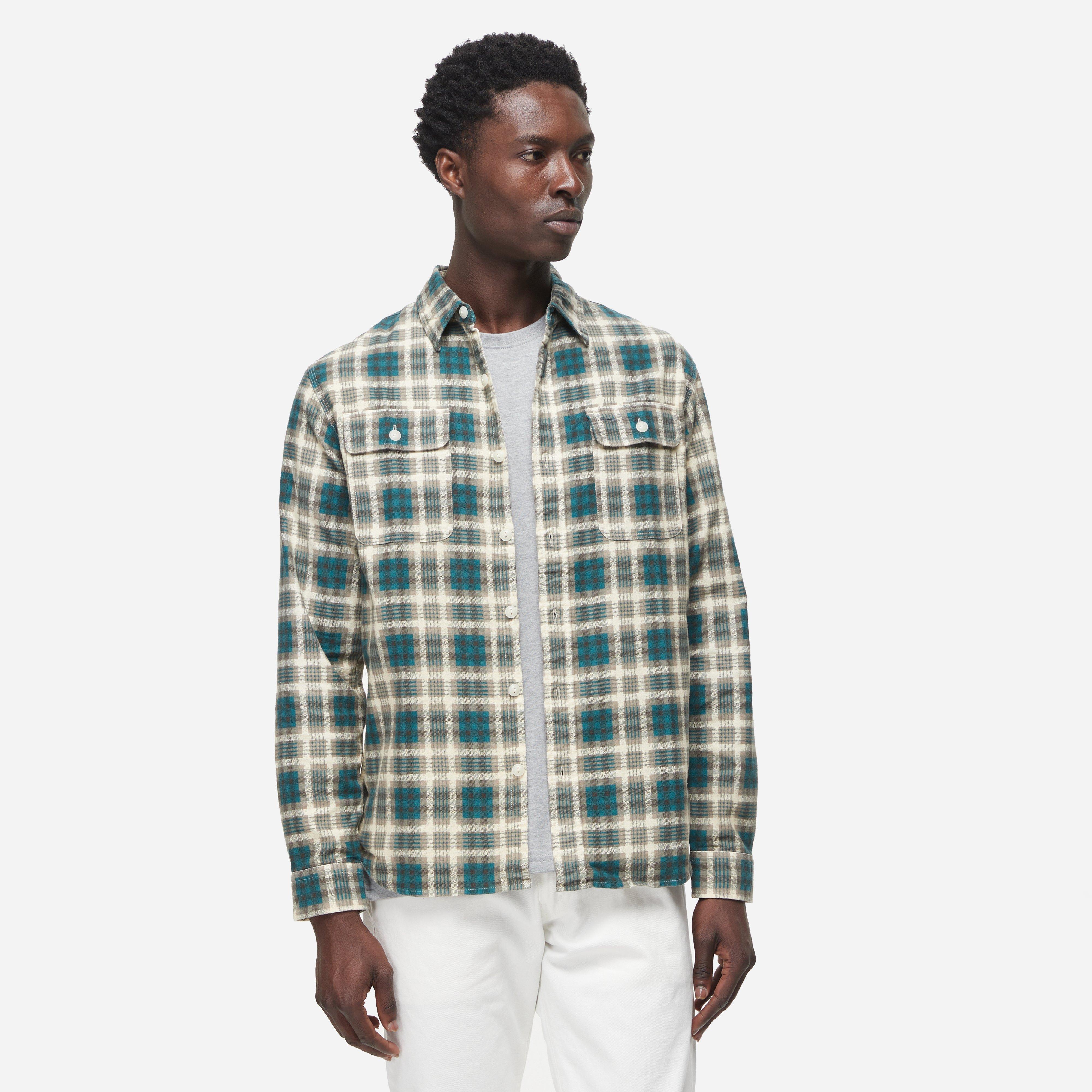 Green - 100% cotton – Straight collar – Long sleeves with button barrel cuffs – Chest pockets – Model is 6’2” and wears a size medium.