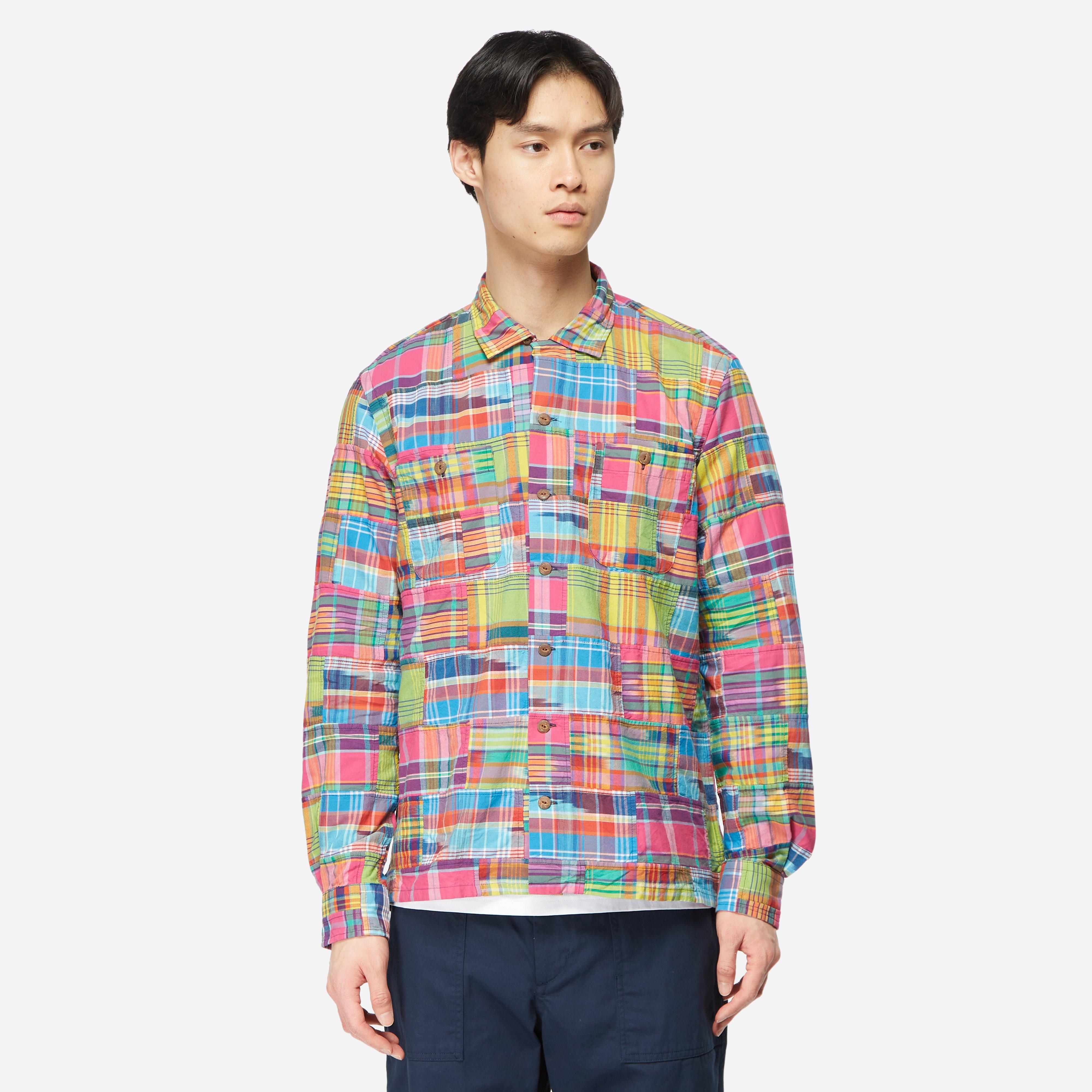 This Shirt is an eye-catching piece made with authentic Indian madras and featuring a pattern inspired by designs traditional to Uzbekistan and cultures throughout Central Asia. Multi - 100% cotton - Button up - Open collar - Embroidered branding - Regular fit, take your normal size - Model is 6'1'' and wears a medium.