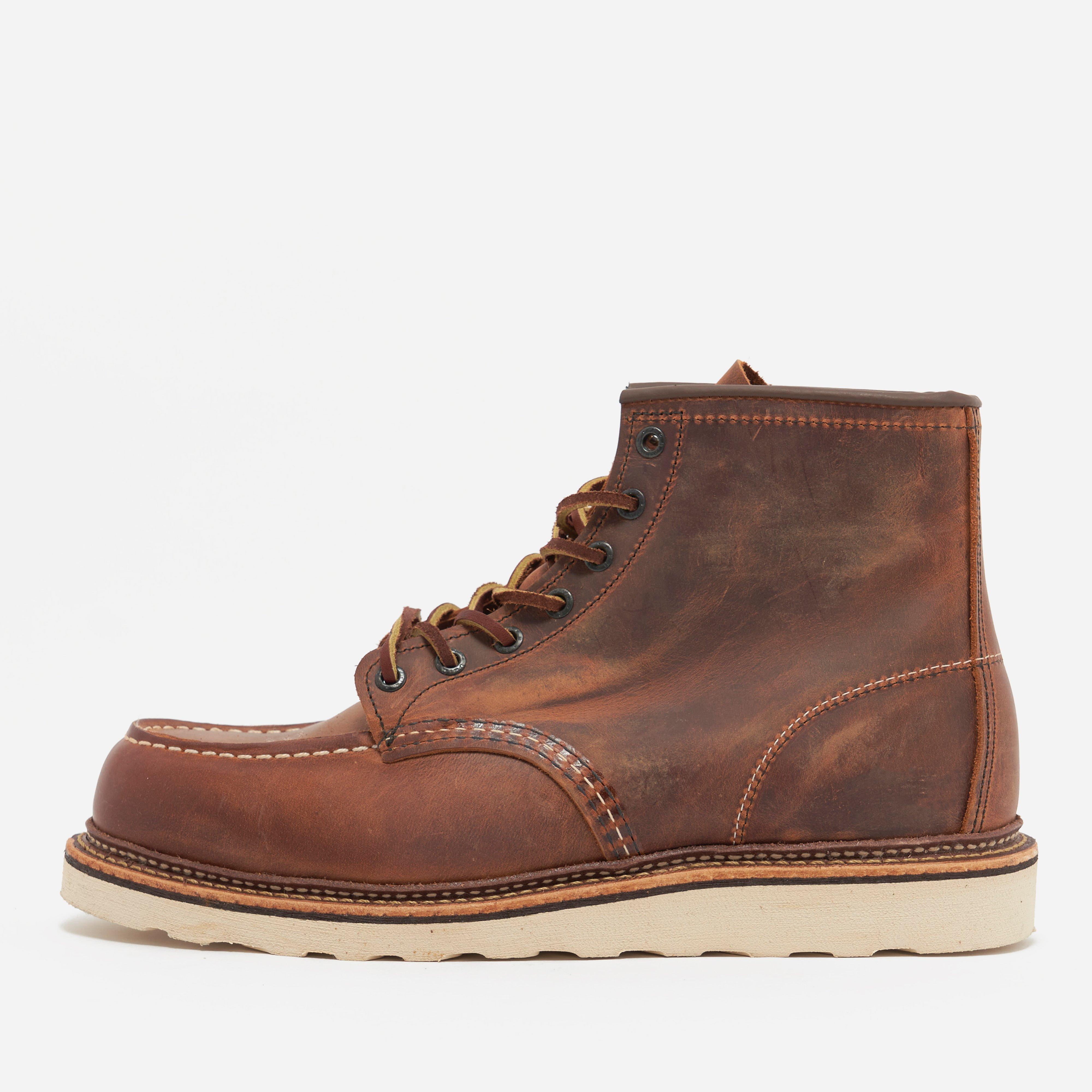 Back in 1905, local shoe merchant Charles Beckman spotted a gap in the market for shoes that were specifically designed to stand up to the demands of traditional local industries such as mining. The 6" Classic Moc Boot is a timeless style from Red Wing which dates back to the 1950s - the silhouettes unique design and hard wearing nature has made it a favorite globally for those who favor workwear inspired footwear built to last the test of time. Copper rough and tough leather uppers - Bigger fit, size down 0.5 to 1 size - Moc Toe construction - Goodyear welt - Lace closure - Made in the USA. Style with a pair of A.P.C. Petit New Standard Jeans.