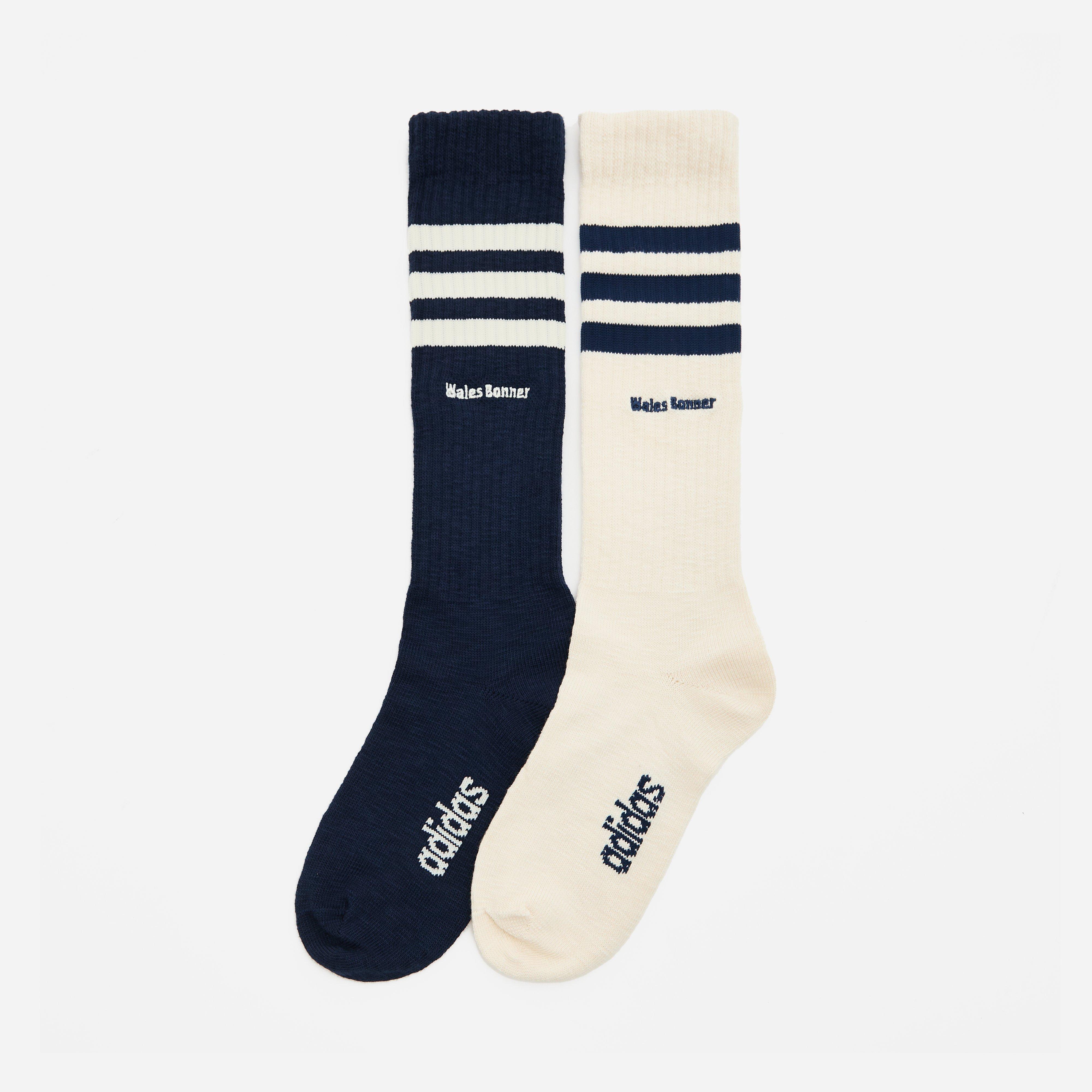 Wales Bonner's latest version of the Samba stays true to the collaboration’s legacy of elevated details and unexpected touches. White/Navy – 95% recycled polyester/4% elastane/1% nylon – Crew length – Logo embroidery – Jacquard motif.