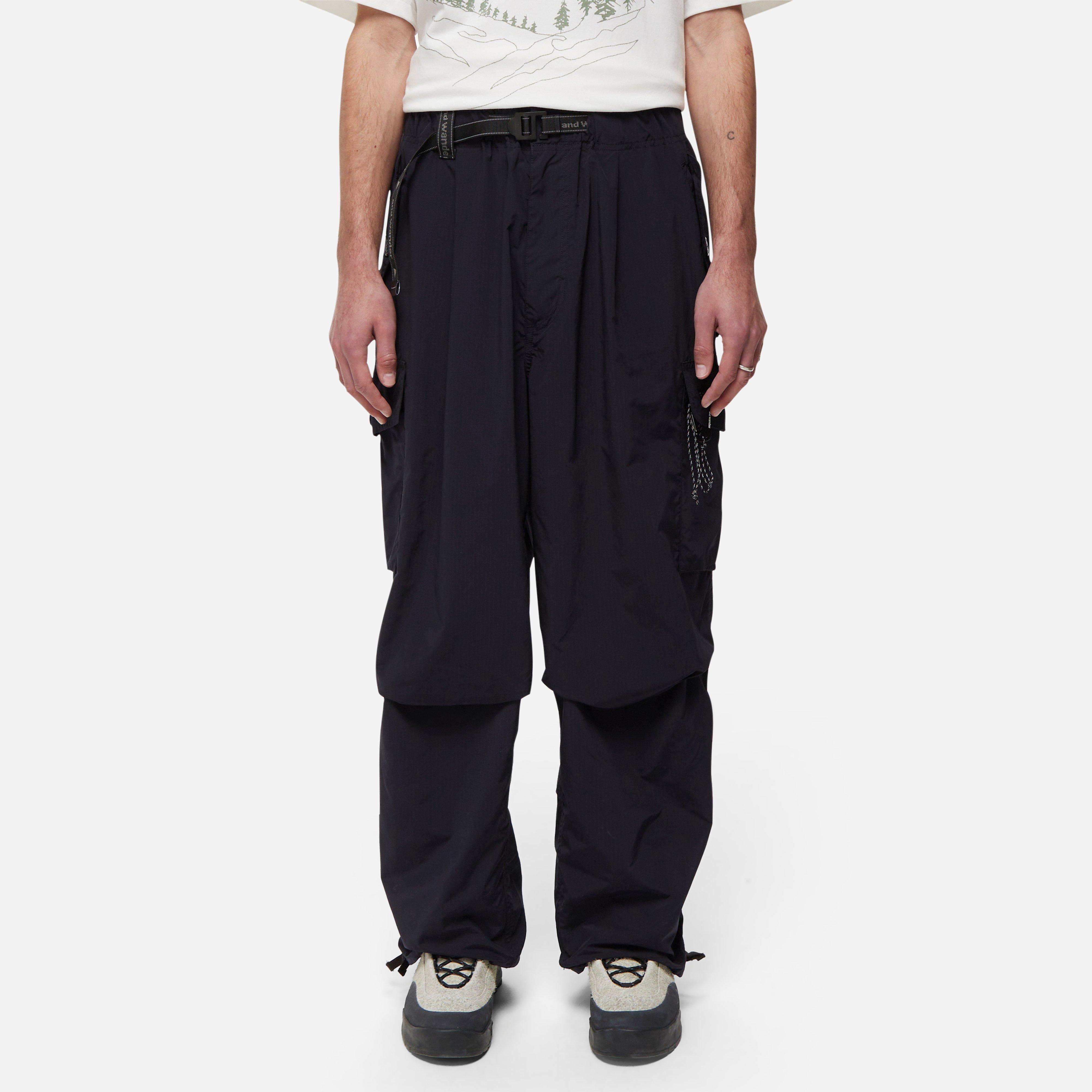 and Wander's Oversized Cargo Pant uses a split yarn fabric consisting of a nylon and polyester yarn with a high density texture and suede-like touch, finished in a wide silhouette.