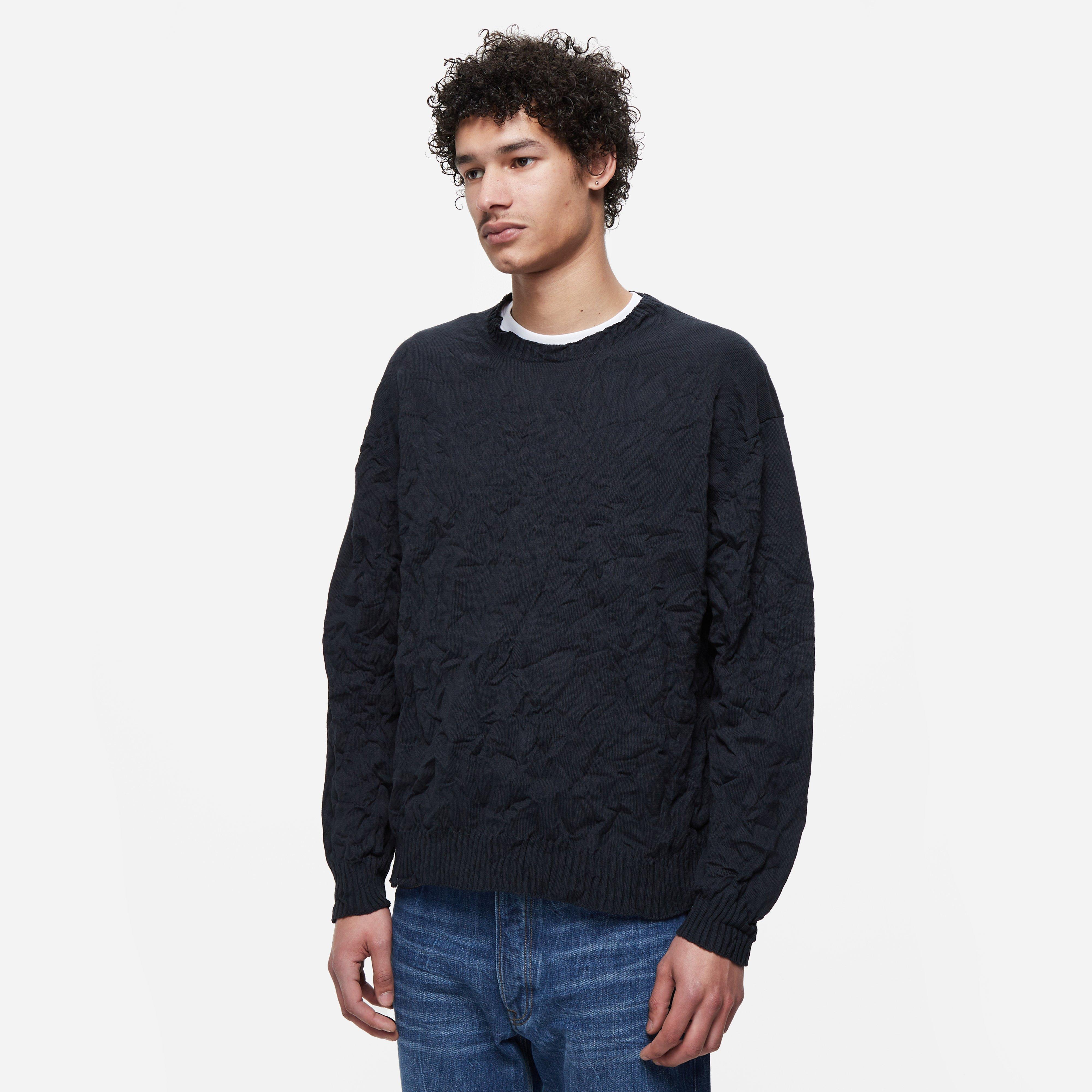 AURALEE’s Wrinkled Dry Cotton Knit is uniquely spun in order to create a deliberately crumpled aesthetic which varies in degree from wearer-to-wearer.