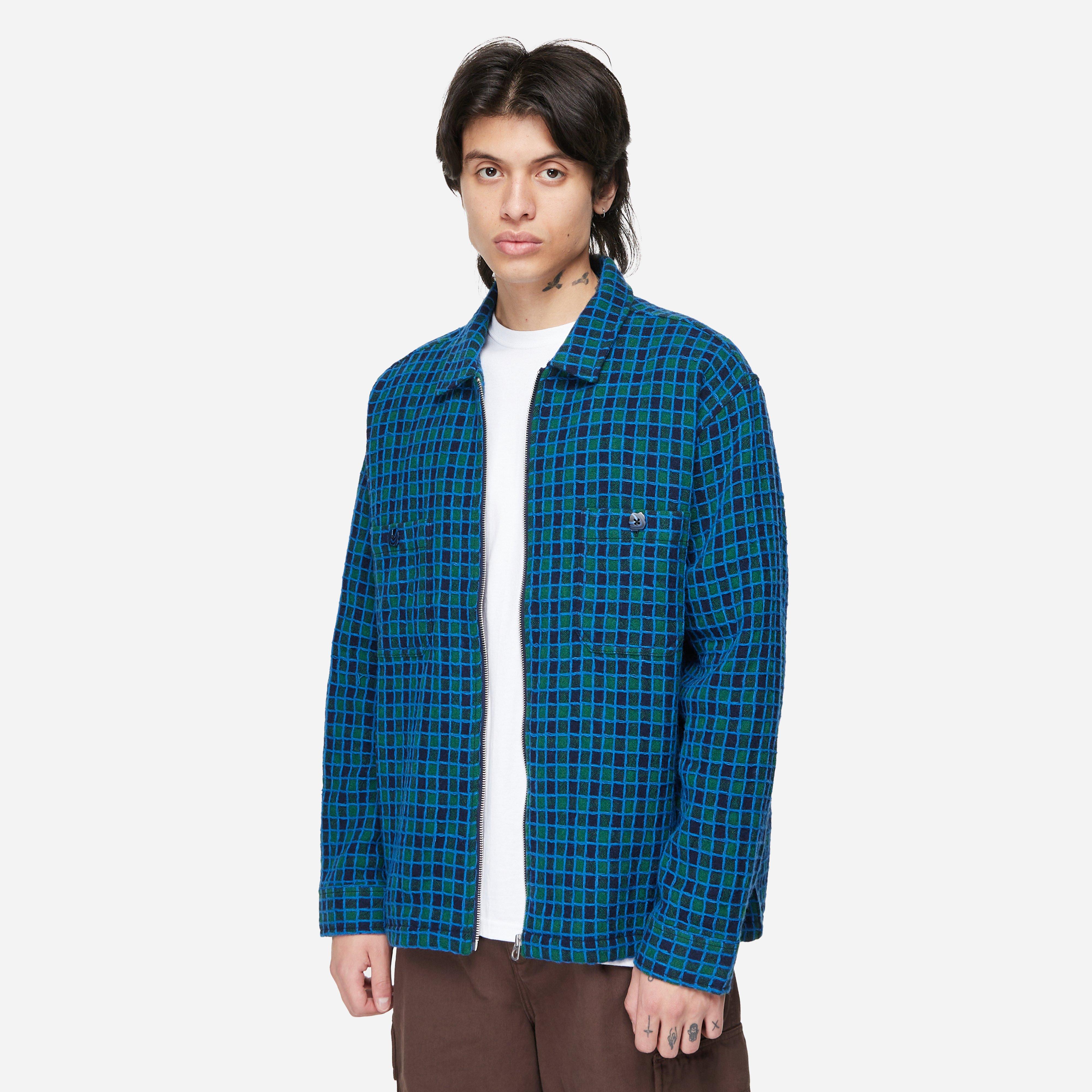 The Zip Shirt by Los Angeles-based global art & design collective Brain Dead experiments with a wool-nylon checkered flannel accented with playful artisanal buttons.