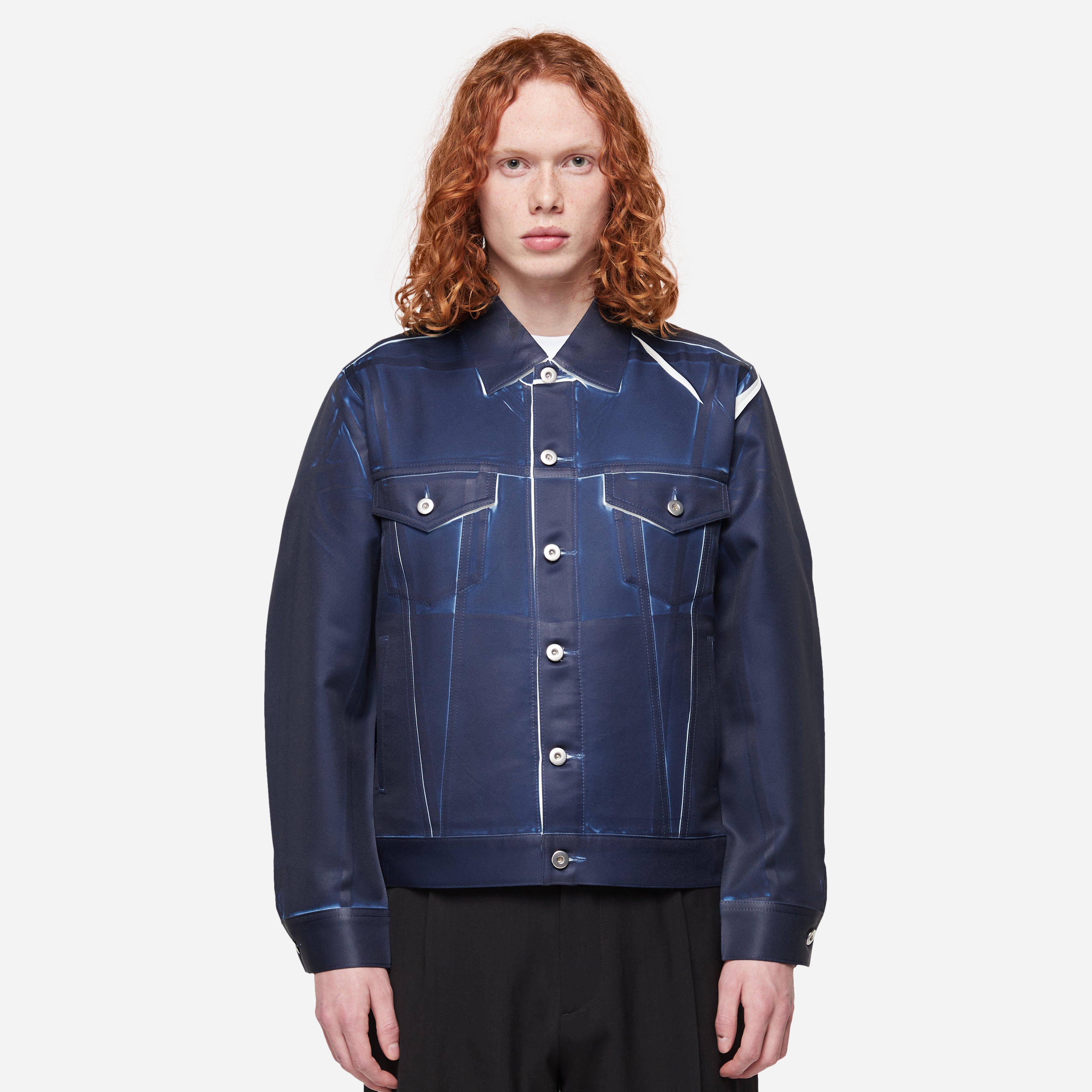Blue - 100% polyester - Screen printed - Point collar - Button fastening - Boxy fit - Front button flap pockets - Unlined - Made in Japan - Model is 6'1" and wears a size medium.