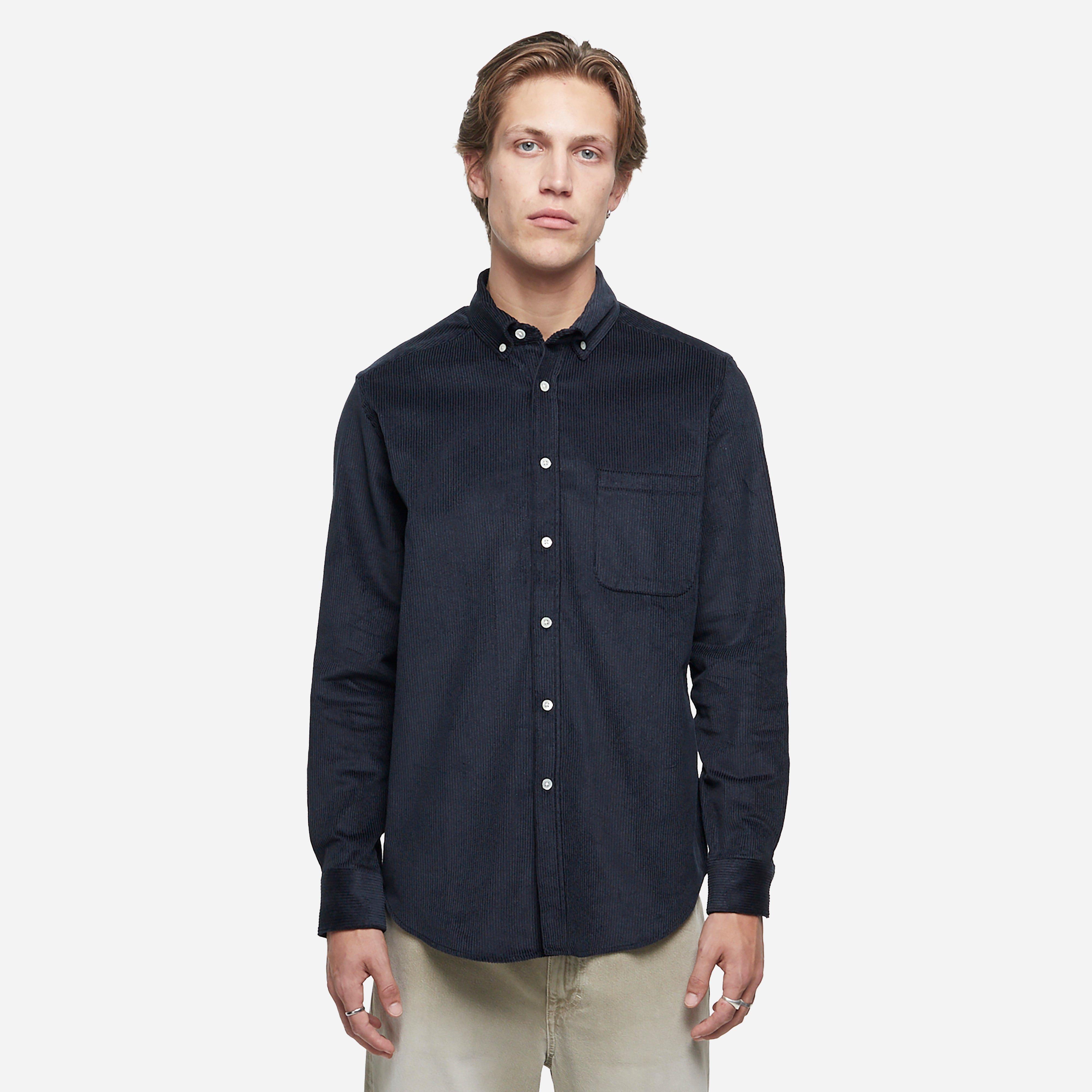 Navy - 100% cotton - Made in Portugal - Mother of Pearl buttons - Chest pocket - Model is 6'2.5" and wears a size medium