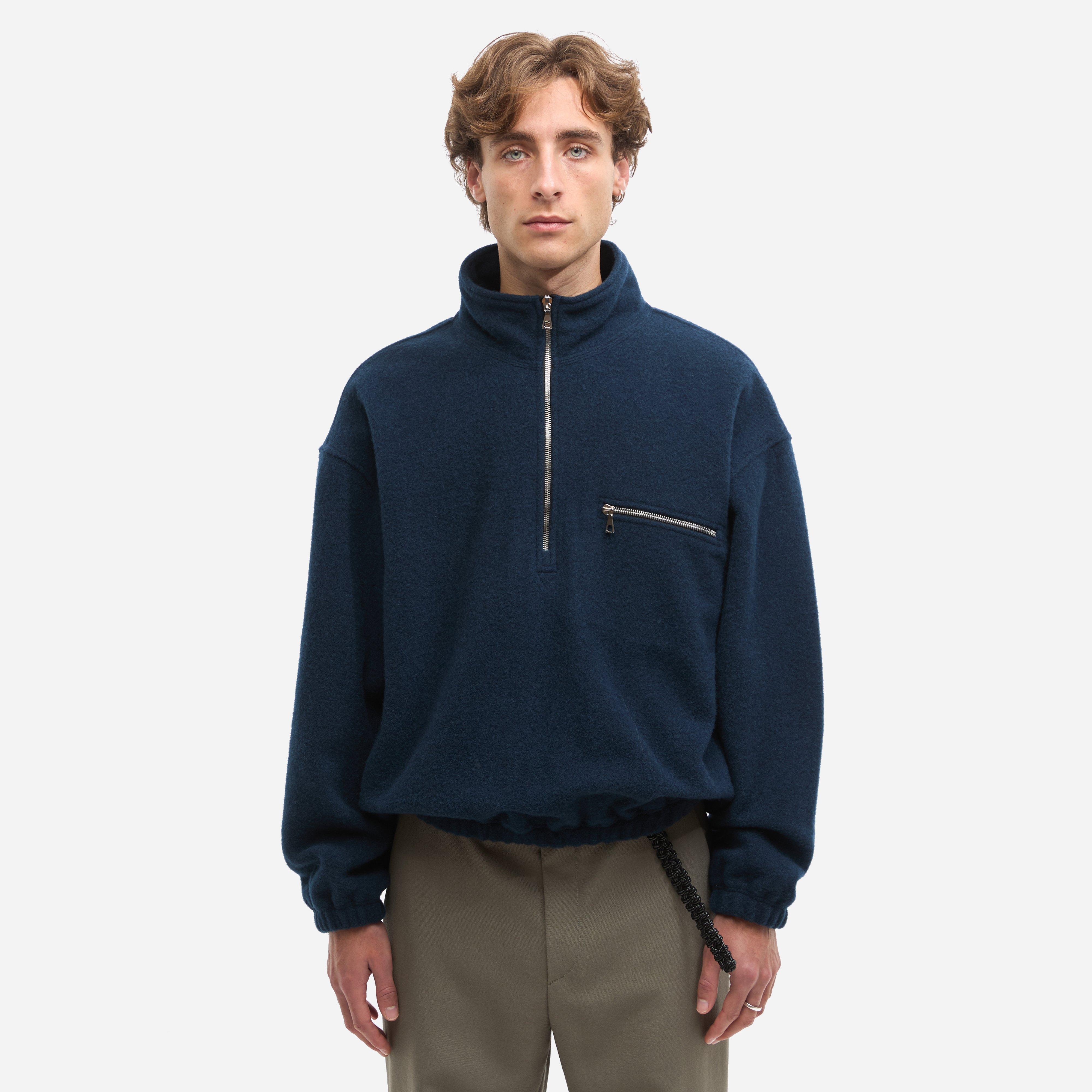 Navy - 100% natural wool - Metal zipper - Stand collar - Elastic cuffs & hem - Model is 5'11" and wears a size medium