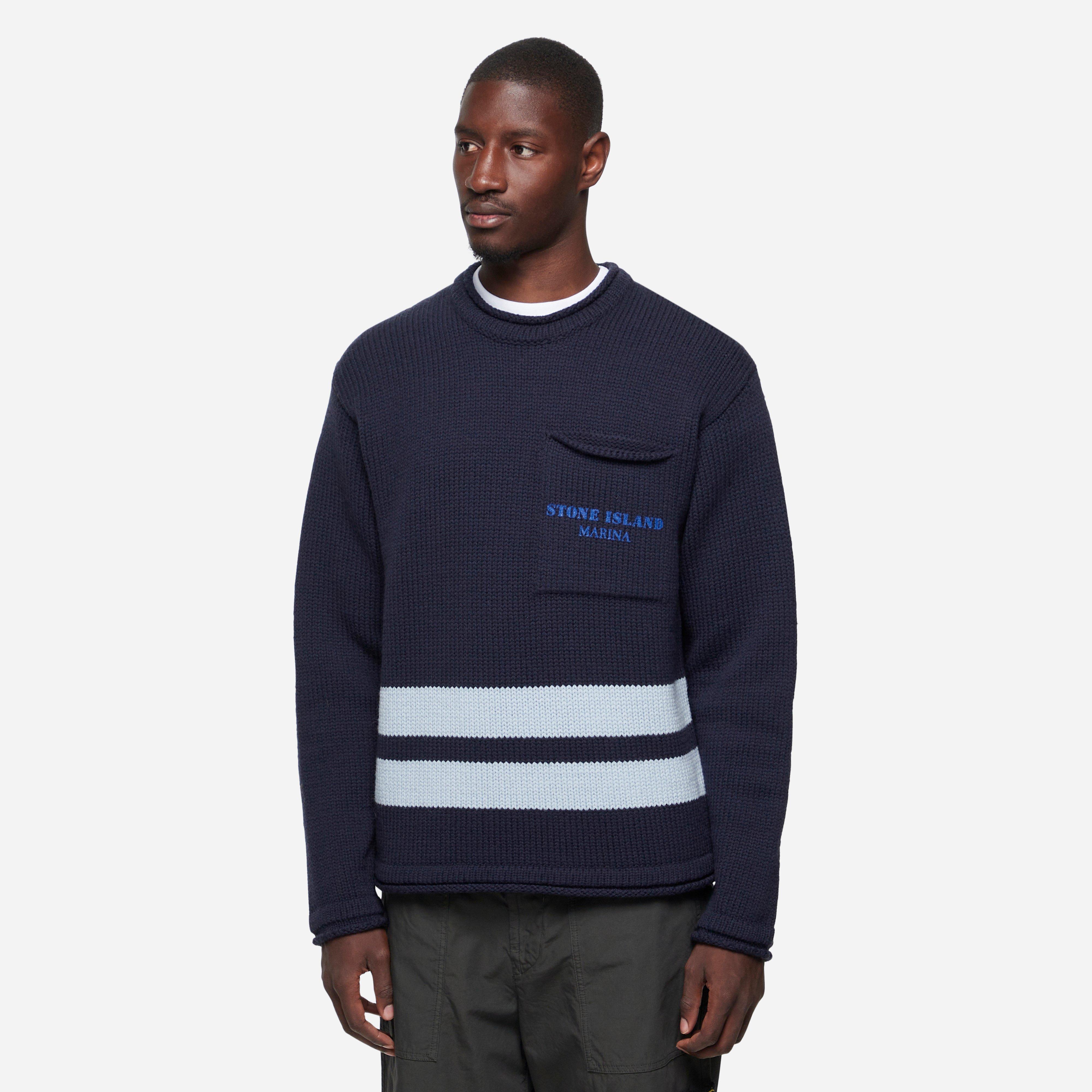 Navy - 100% wool - Made in Italy - Crew neck - Chest pocket - Model is 6'1" and wears a size medium.