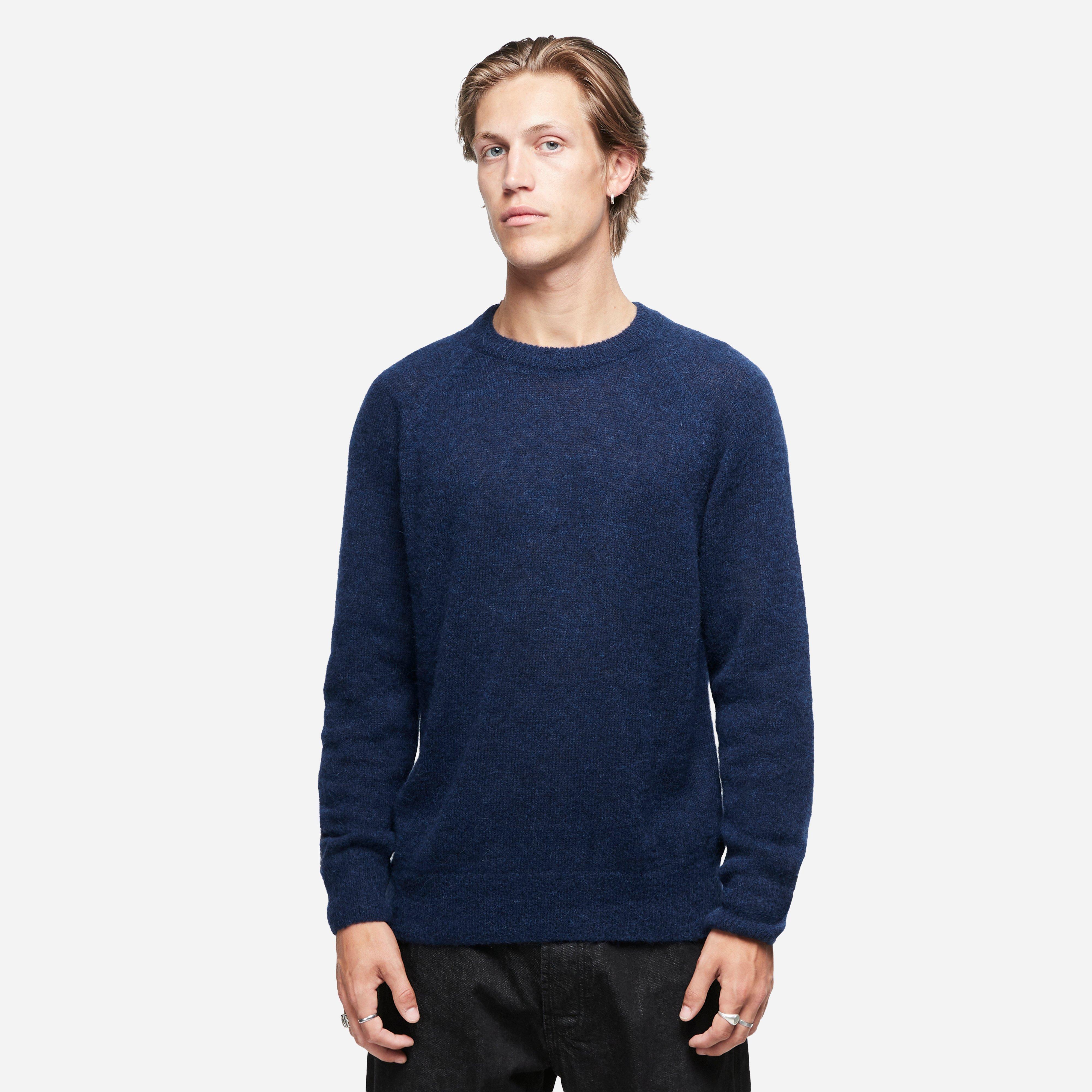 Navy - 55% alpaca, 25% recycled polyamide, 20% wool - Regular fit - Ribbed neck, cuffs & hem - Model is 6'2.5" and wears a size medium.
