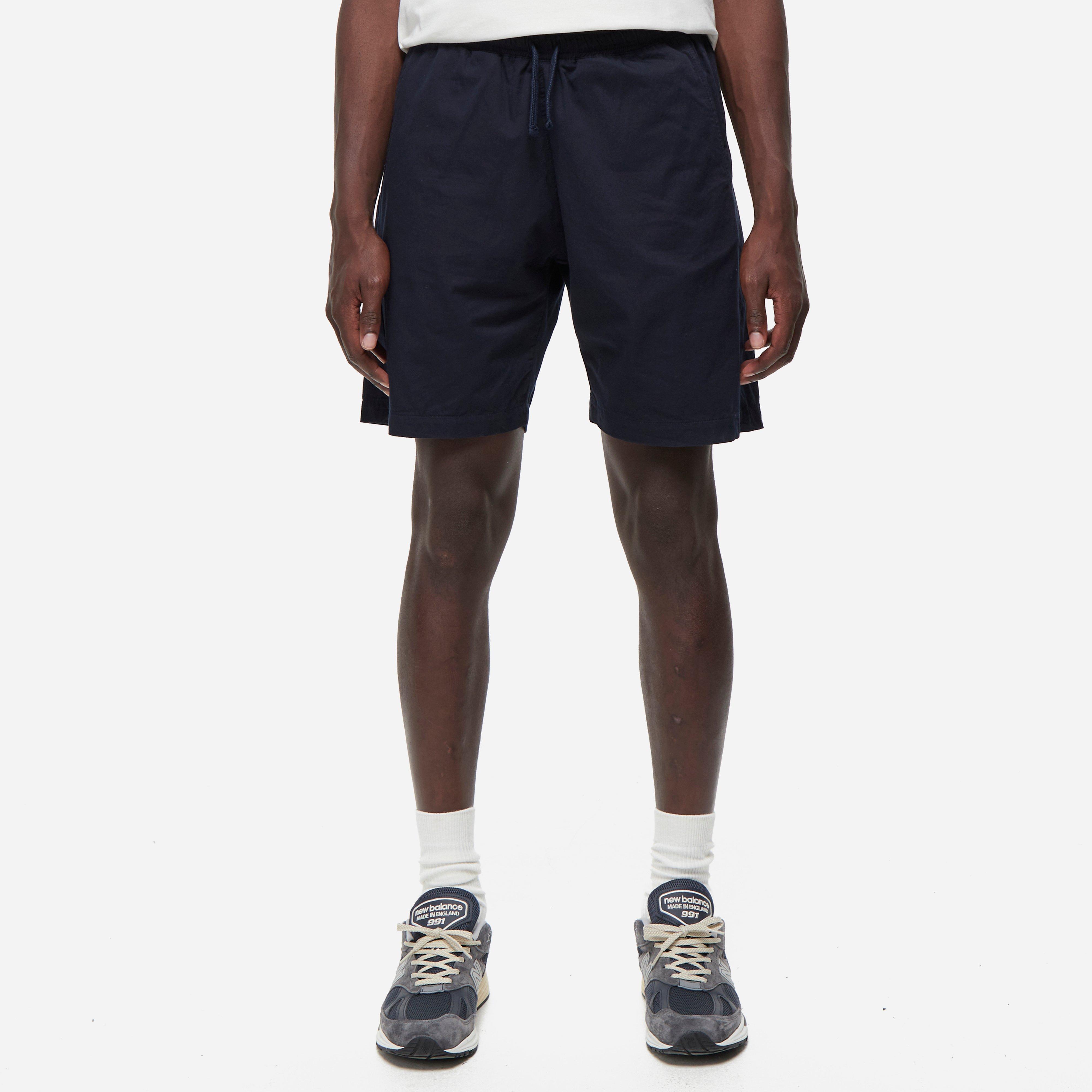 Indigo – 80% cotton, 20% recycled cotton – Drawstring waist – Knee cut – Two front pockets – Model is 6’1’’ and wears a size medium.