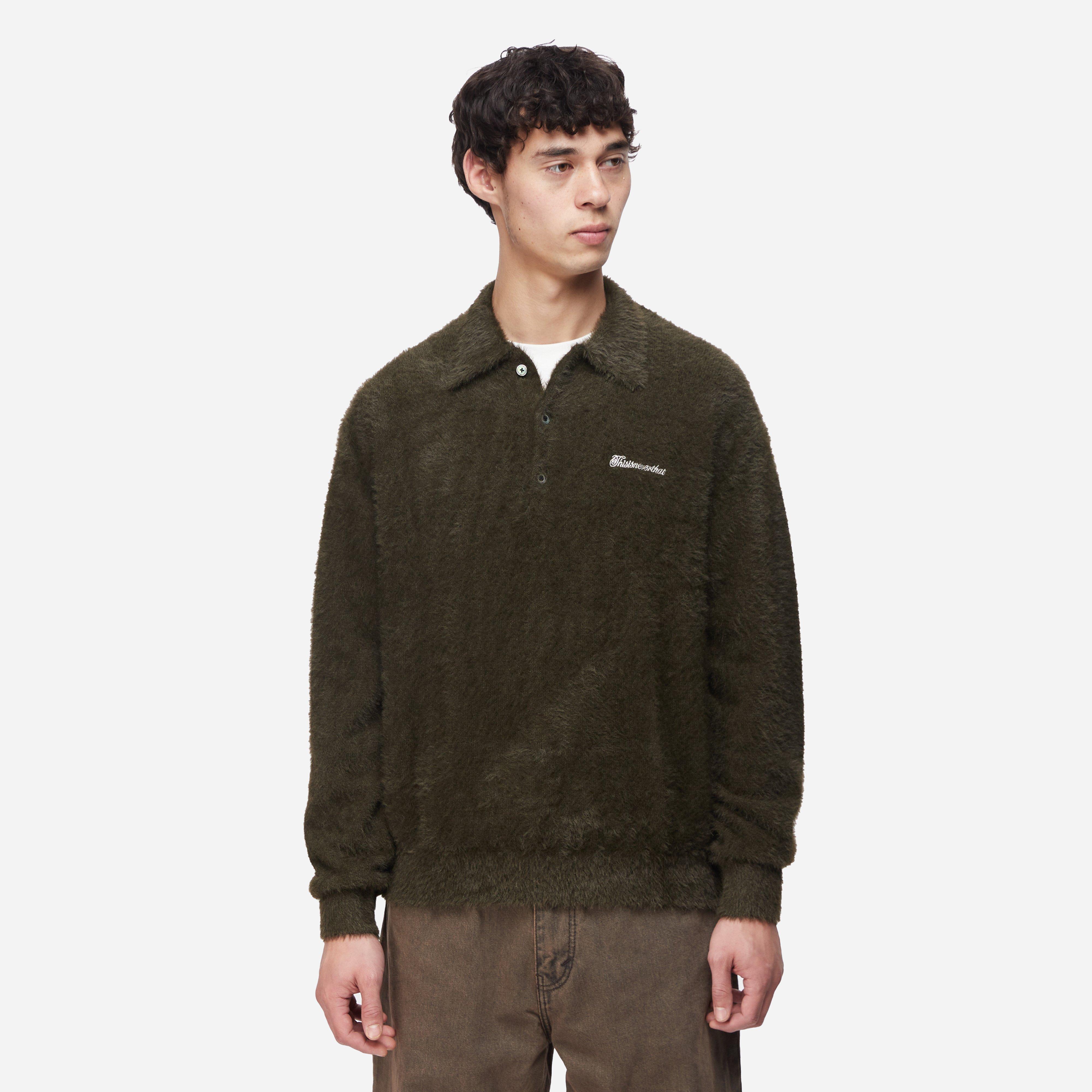 Olive – 100% nylon – Regular fit – Mother of pearl buttons – Script logo embroidery – Model is 5’11’’ and wears a size medium.