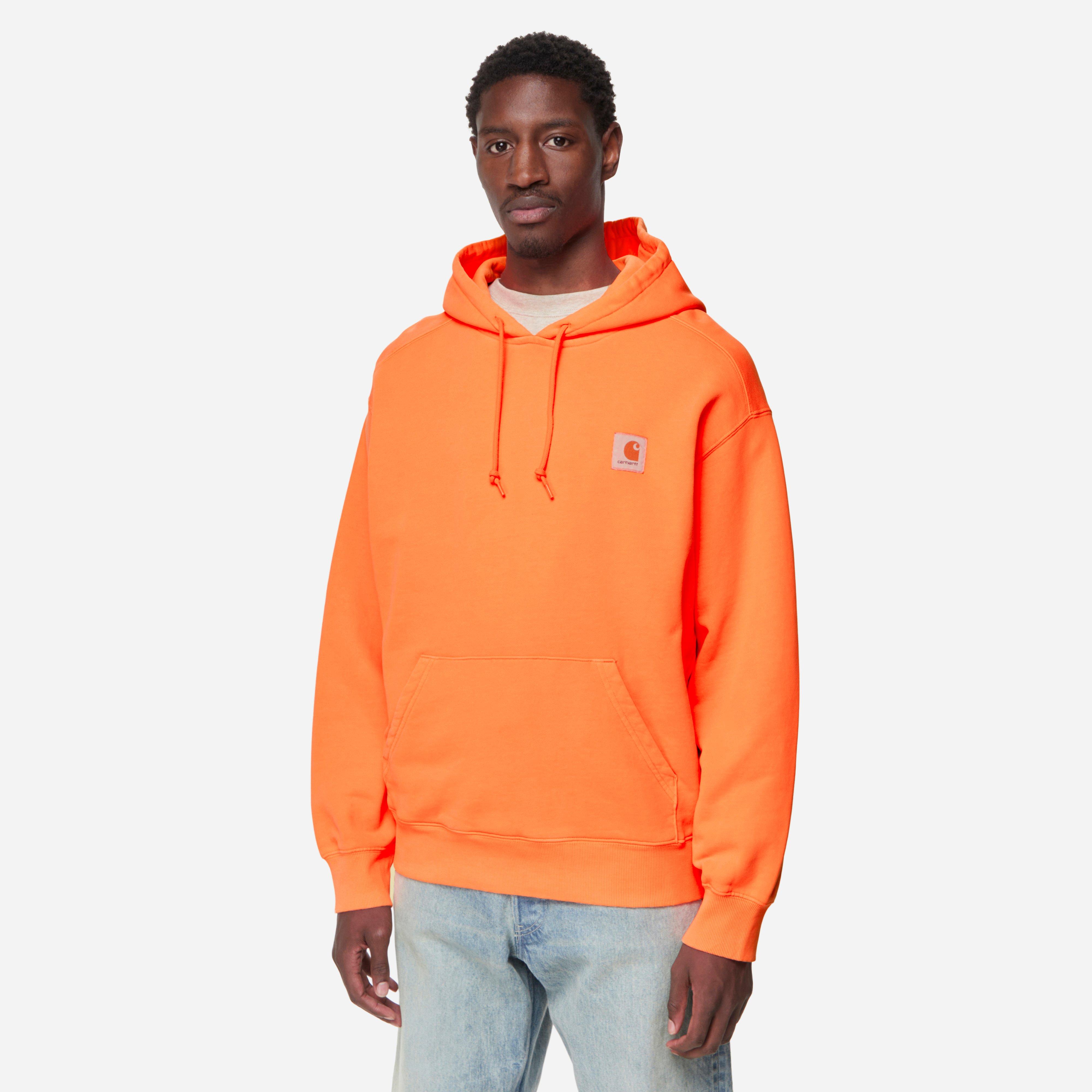 Orange - 100% cotton - Loose fit - 420gsm - Adjustable hood - Kangaroo pocket - Square label - Model is 6'1" and wears size medium.