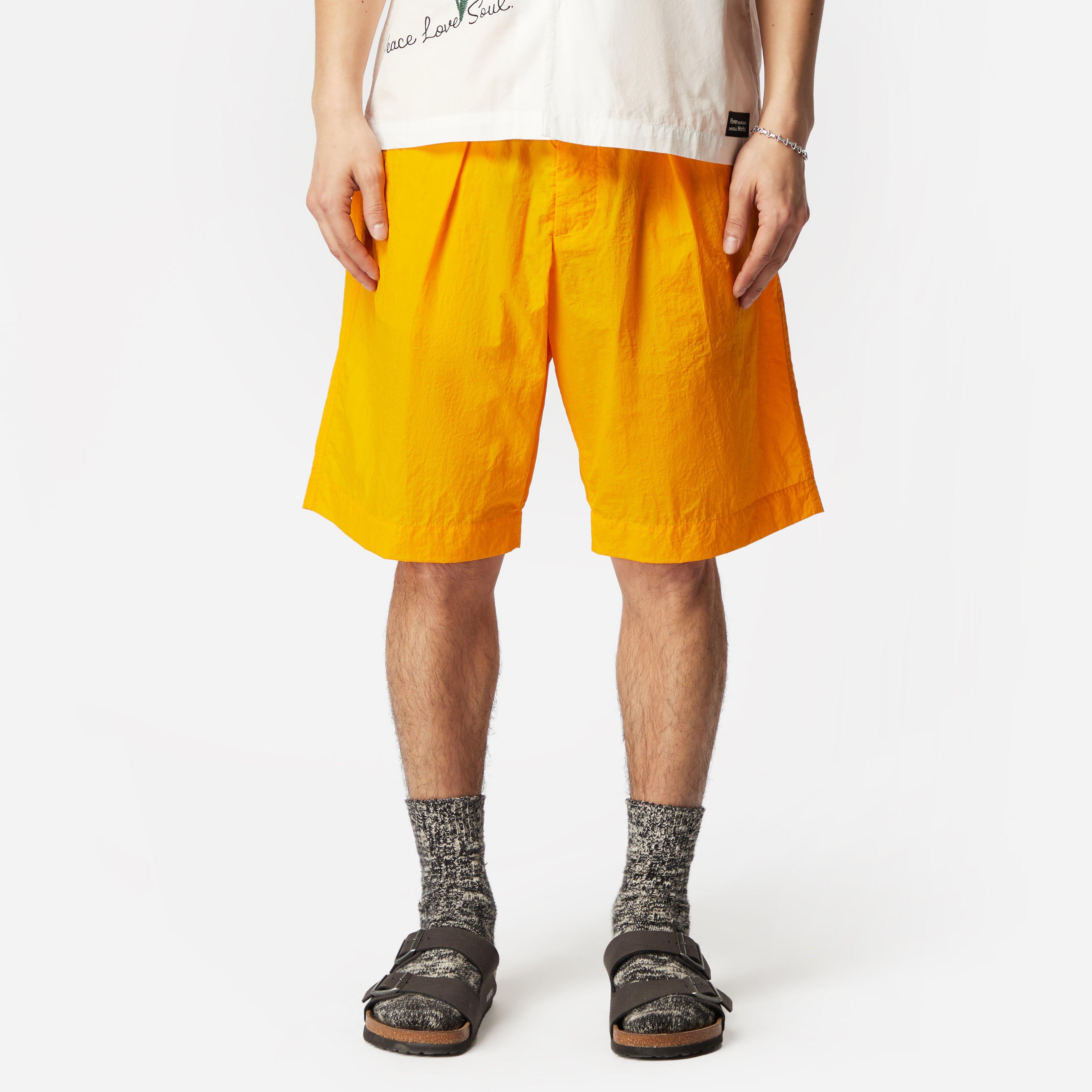 The short is light and airy - cut with an elastic waist and slightly stretched fabric perfect for those hotter days. Orange - 97% cotton, 3% elastane - Elastic waist - Single pleat front - Zip fly - Loose, long fit, take your normal size - Model is 6'1" and wears a size 32 - Waist size guide (in.) - 30=29.1, 32=31.1. 34=33.1, 36=35.1.