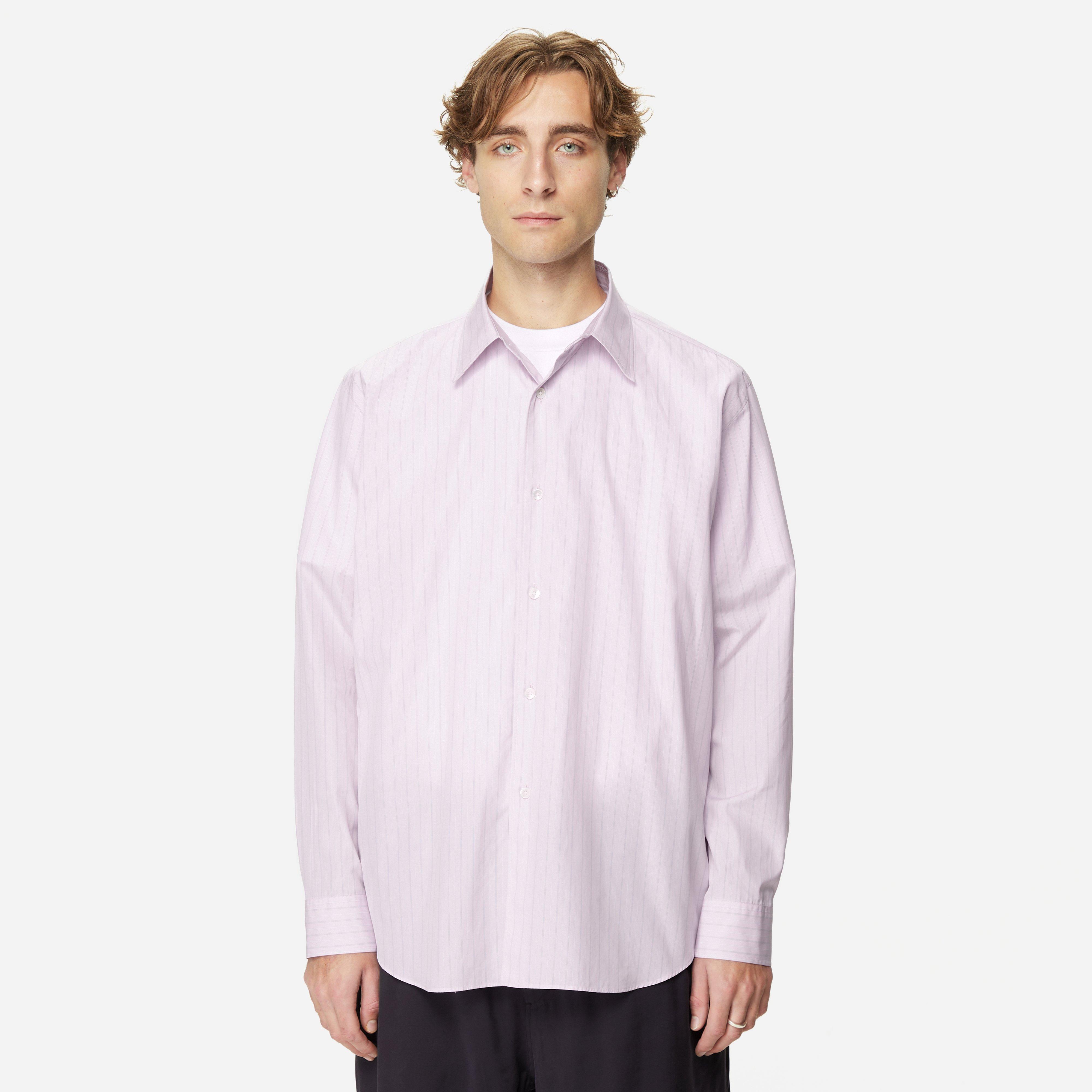 The Suvin Stripe Shirt is meticulously crafted using ultra-fine cotton that's undergone a gas singeing process during spinning to produce a beautiful yarn. Pink - 100% cotton - Relaxed fit - Button cuffs and closure - Model is 5'11" and wears a size 5.