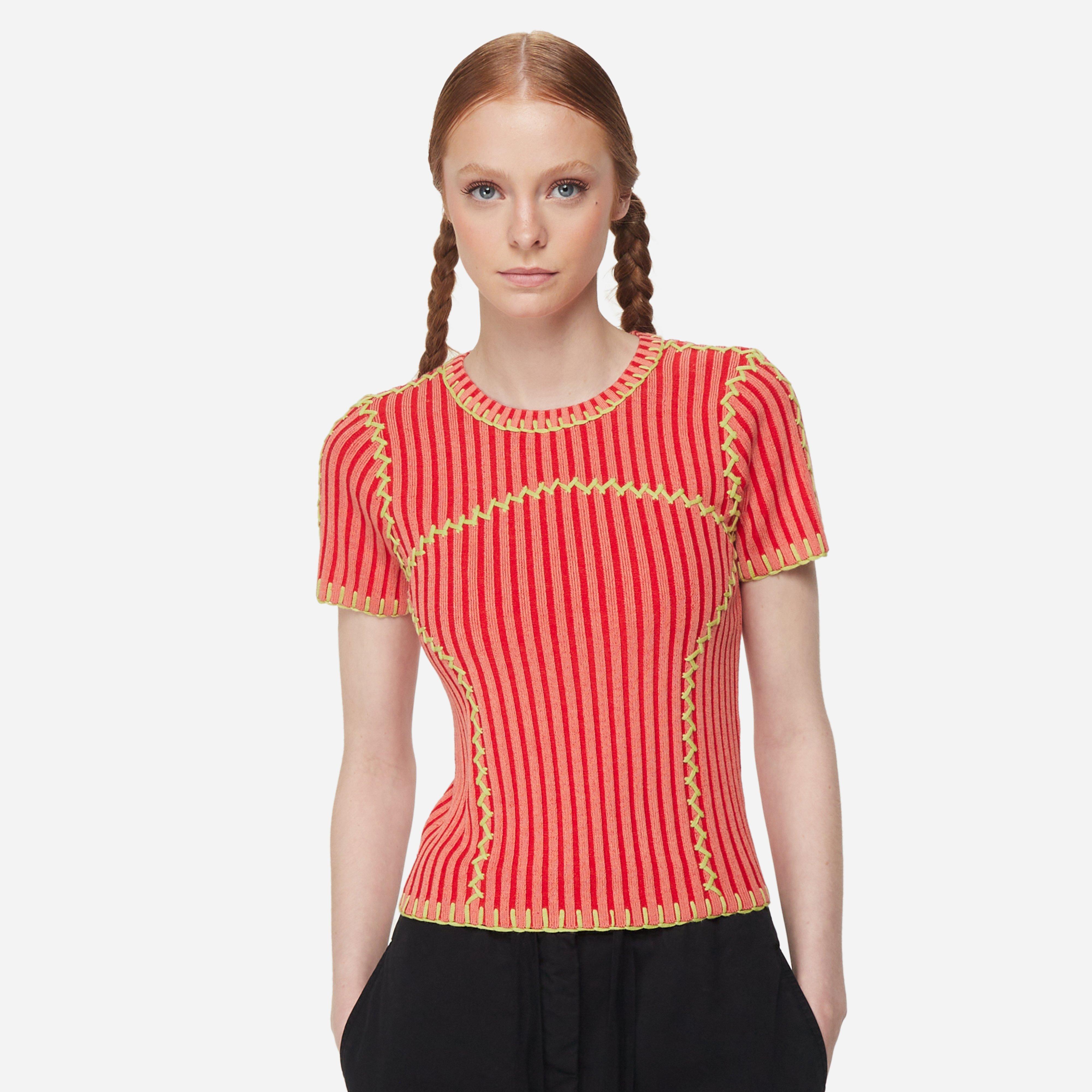Brain Dead's cut & sew is an extension of the brand's experimental philosophy - the Mariel Sports Top is a two-toned ribbed knit with hand-embroidered stitching.