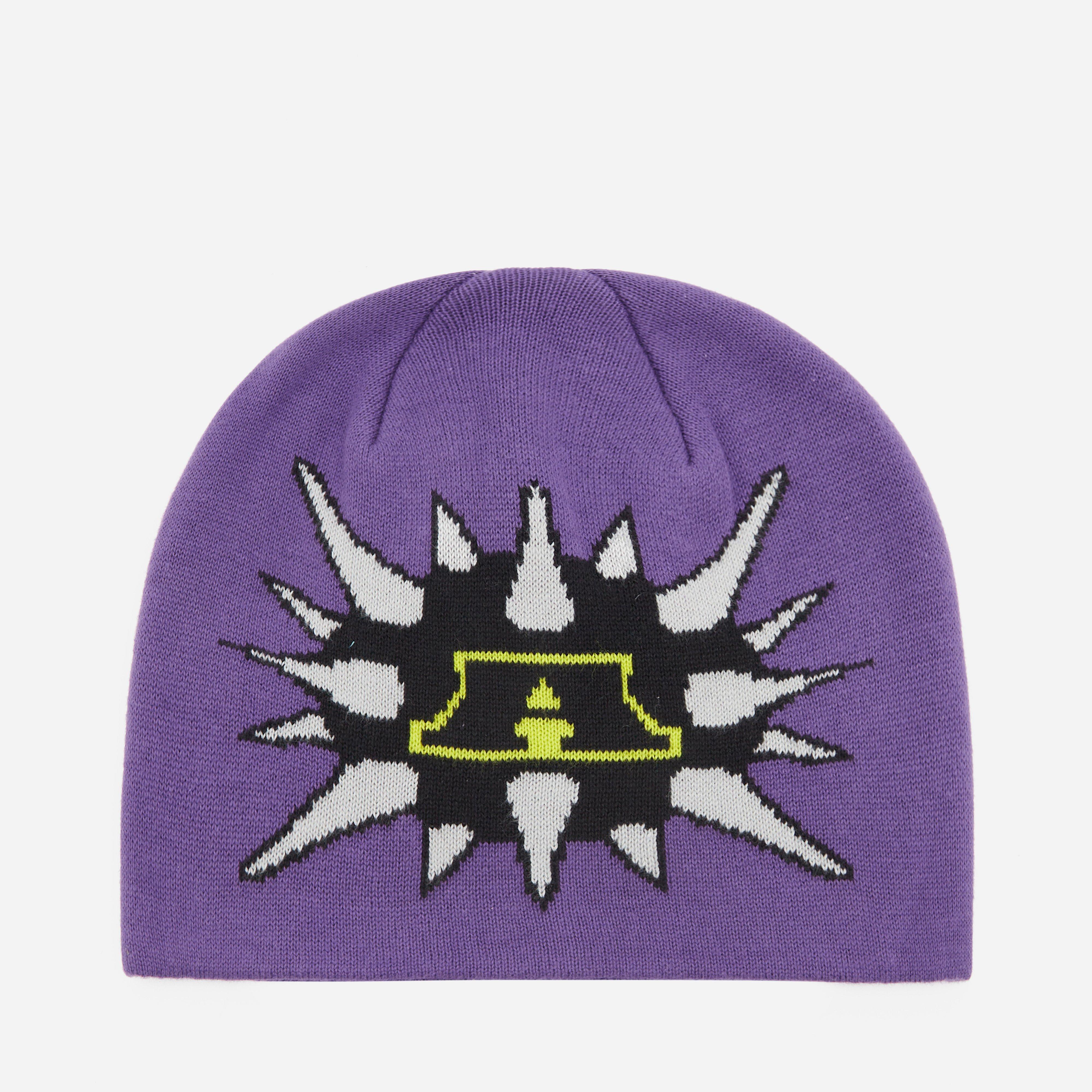 Plum – 100% cotton – Midweight fabric – Double layer knit – Intarsia graphic – One size.