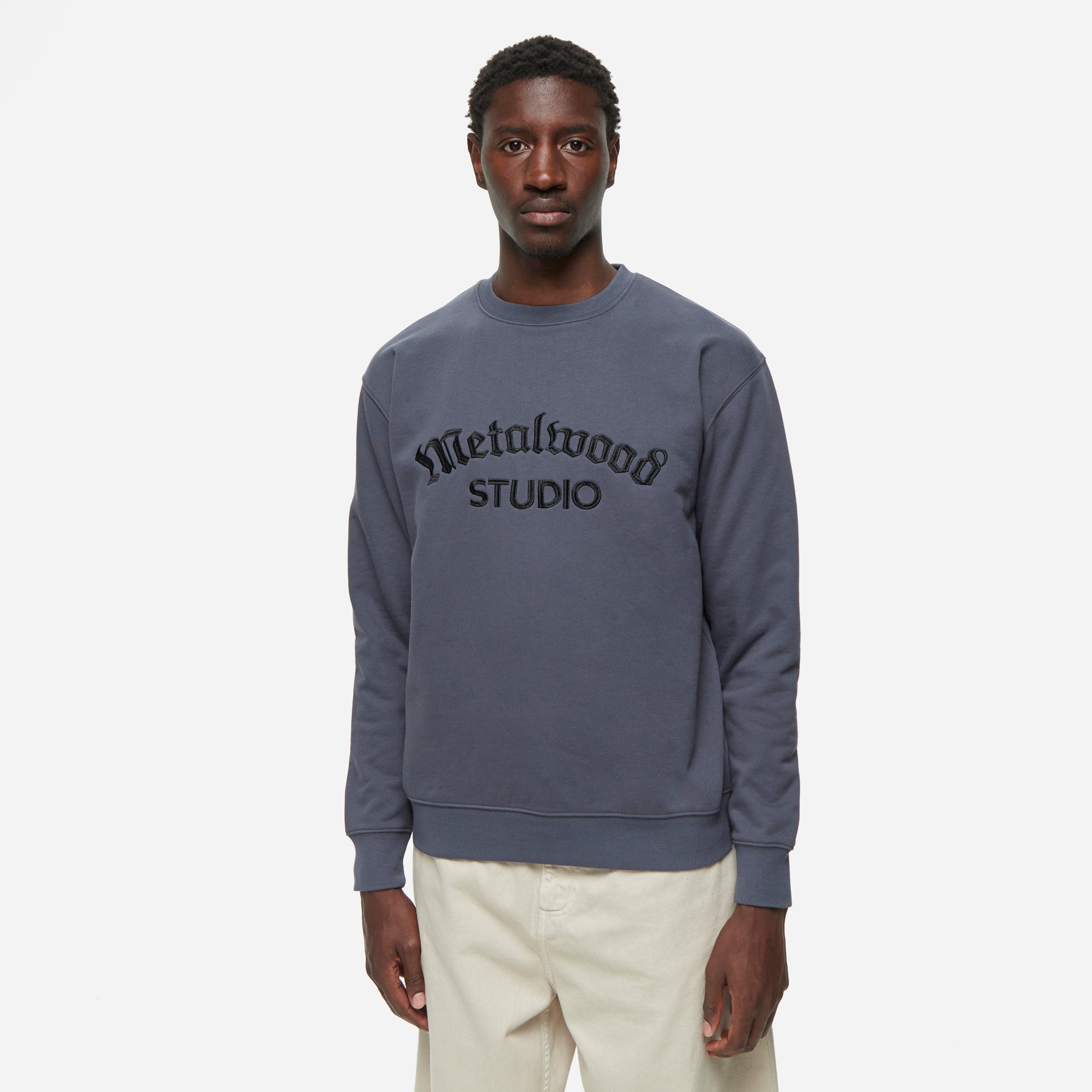 Midnight – 84% Terry cotton, 16% polyester – Crew neck – Ribbed trims – Typographic embroidery – Model is 6’2’’ and wears a size medium.