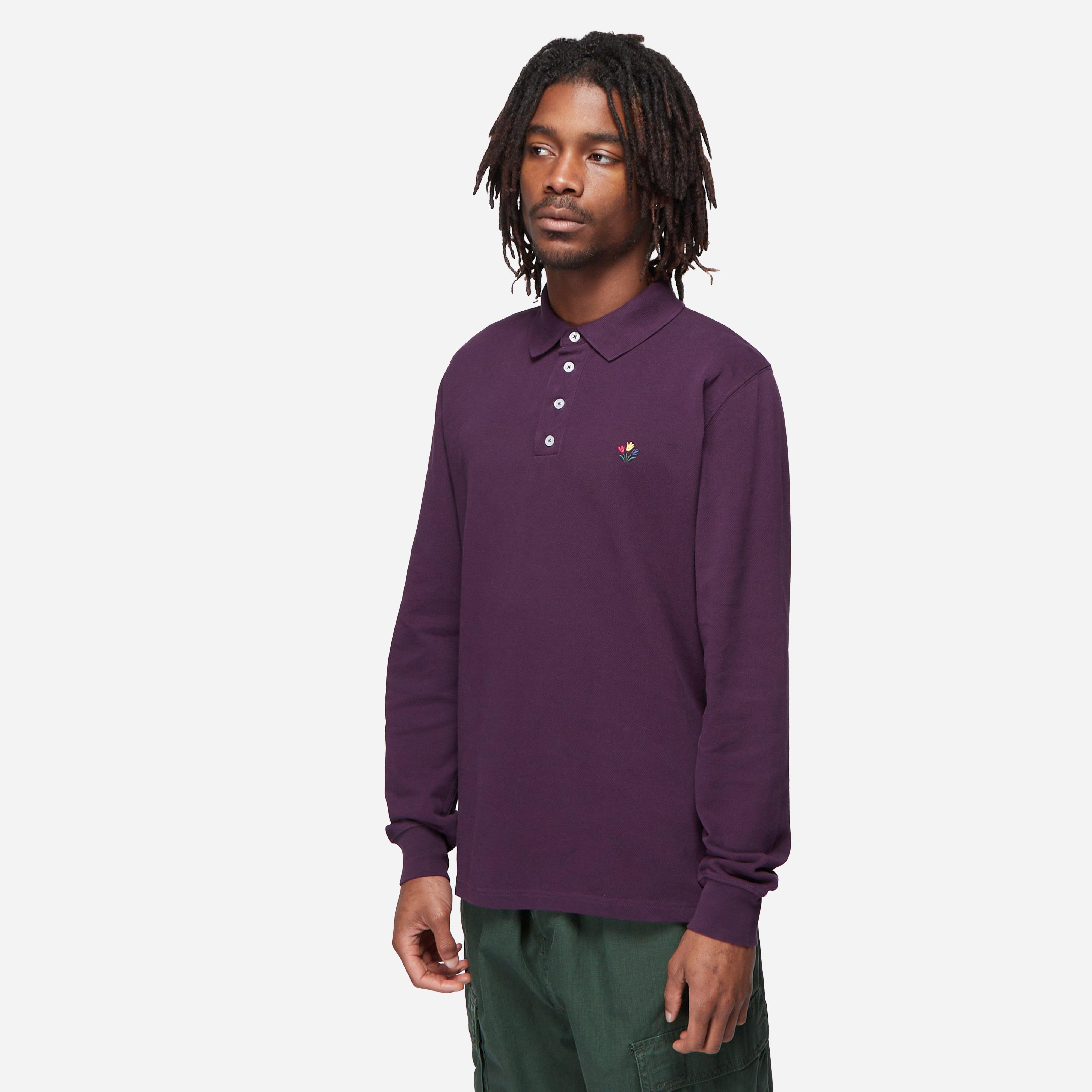 SS23's Pique Polo Shirt is made in Portugal using a 100% cotton heavyweight piqué, finished with subtle flower embroidery. Purple - 100% cotton - 4 button placket - Flat knit collar and cuffs - Side vents at hem - Graphic embroidery - Made in Portugal - Regular fit, take your normal size - Model is 6'0 and wears a size medium.