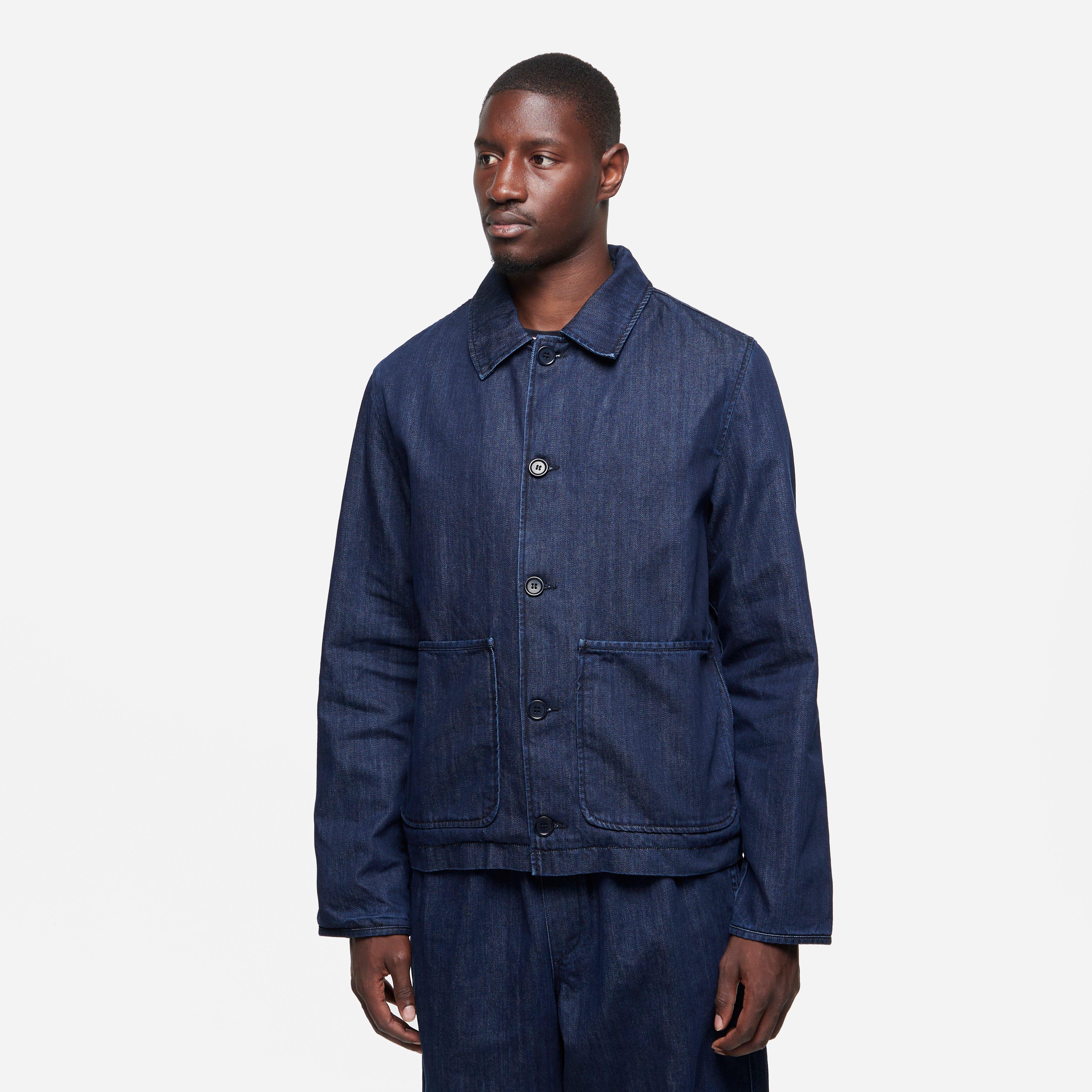 The Groundhog Jacket is fully-lined and has been treated with an evo dye finish. Blue – 84% cotton/16% polyester – Boxy fit – French cord – Patch pockets – Corozo button closures – Made in Poland – Model is 6’1’’ and wears a size medium.