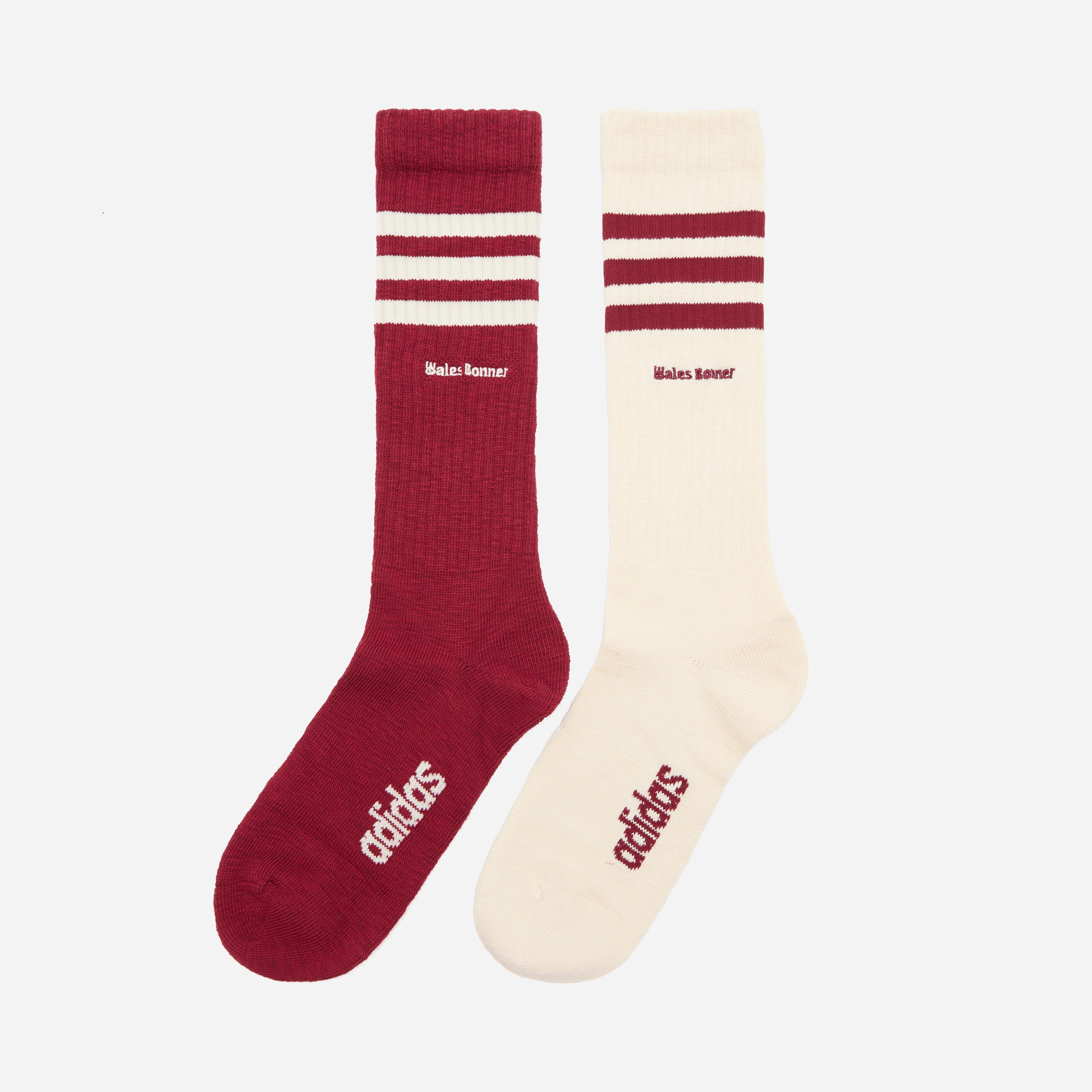 Wales Bonner's latest version of the Samba stays true to the collaboration’s legacy of elevated details and unexpected touches. White/Burgundy – 95% recycled polyester/4% elastane/1% nylon – Crew length – Logo embroidery – Jacquard motif.