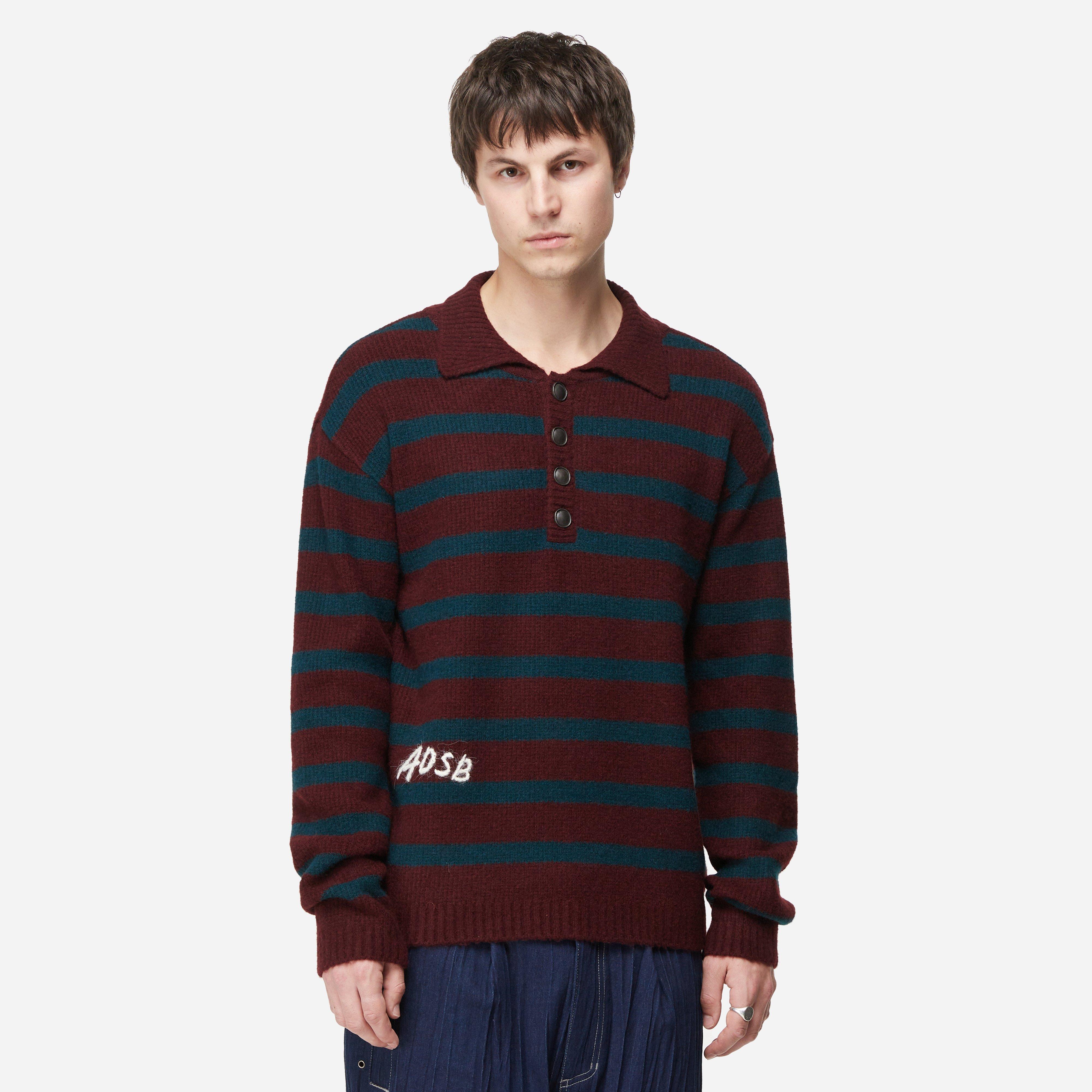 Andersson Bell's Polo Shirt is knitted in green and burgundy stripes to bring colour and texture to your rotation.