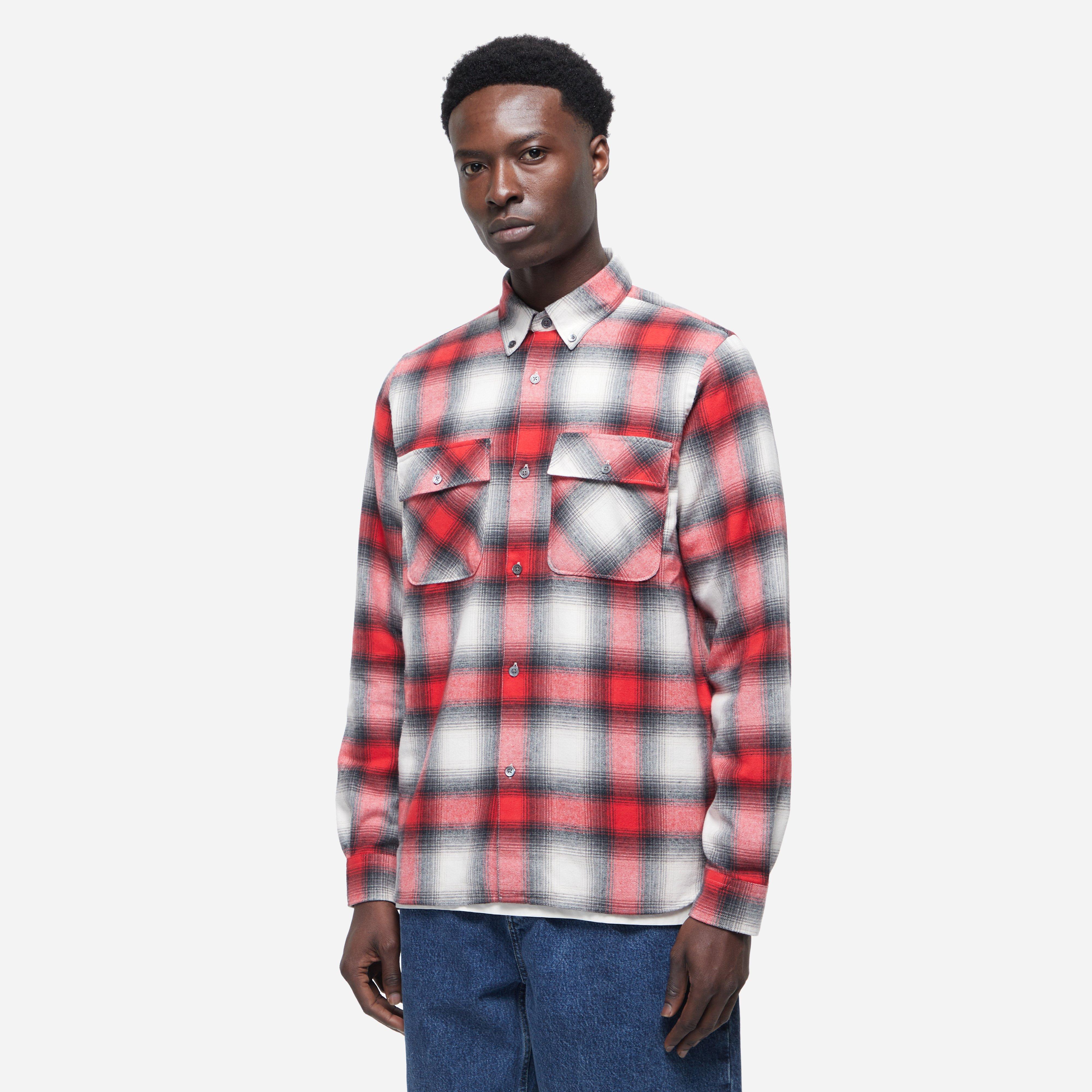 The Lumberjack Shirt is made from a soft poly cotton in a plaid pattern. Red - 50% cotton, 50% polyester - Made in Portugal - Button closure - Button collar - Patch pockets - Curved hem - Model is 6'2" and wears size medium.