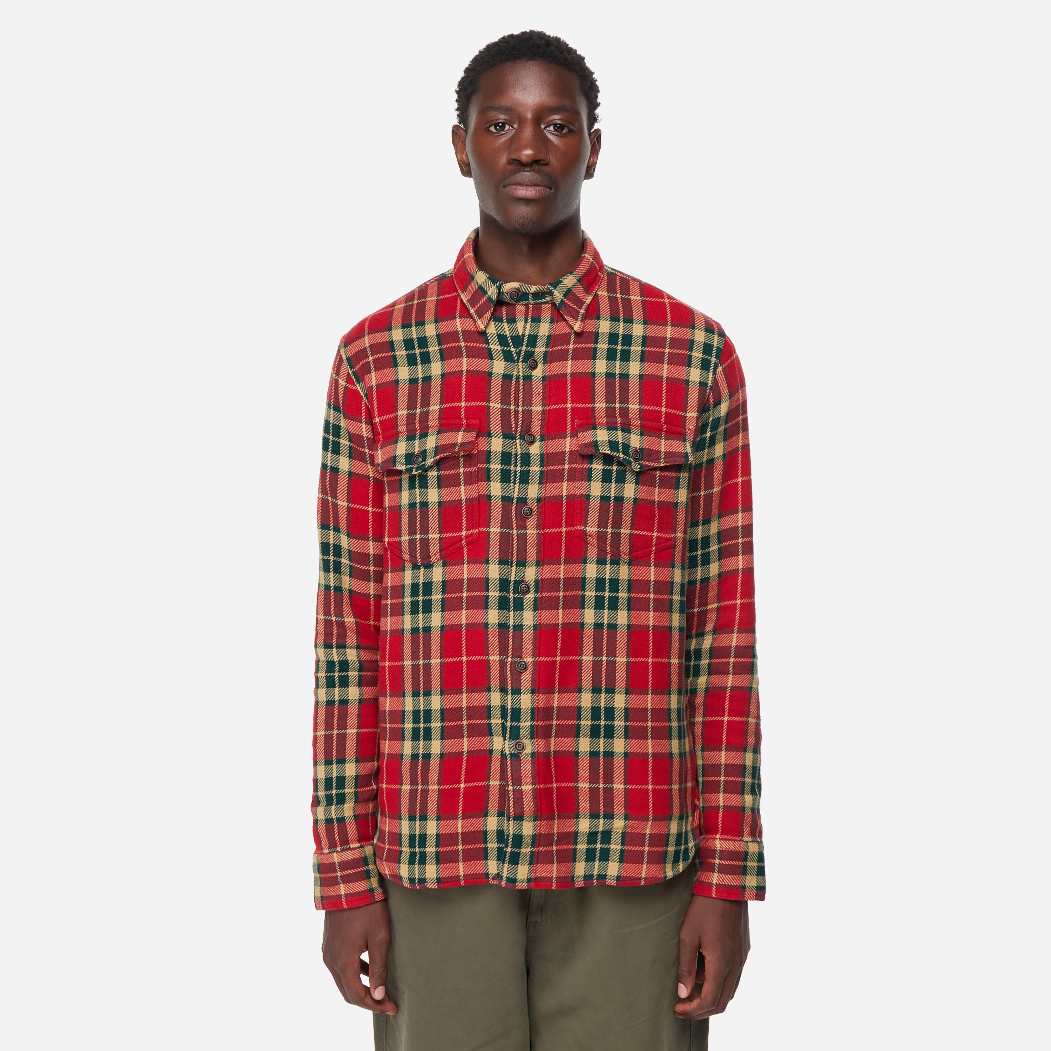 The piece is cut from sturdy heavyweight cotton in a classic check pattern. Red - 100% cotton - Curved hem - Button cuffs - Chest pockets - Regular fit, take your normal size - Model is 6'1" and wears a size medium.