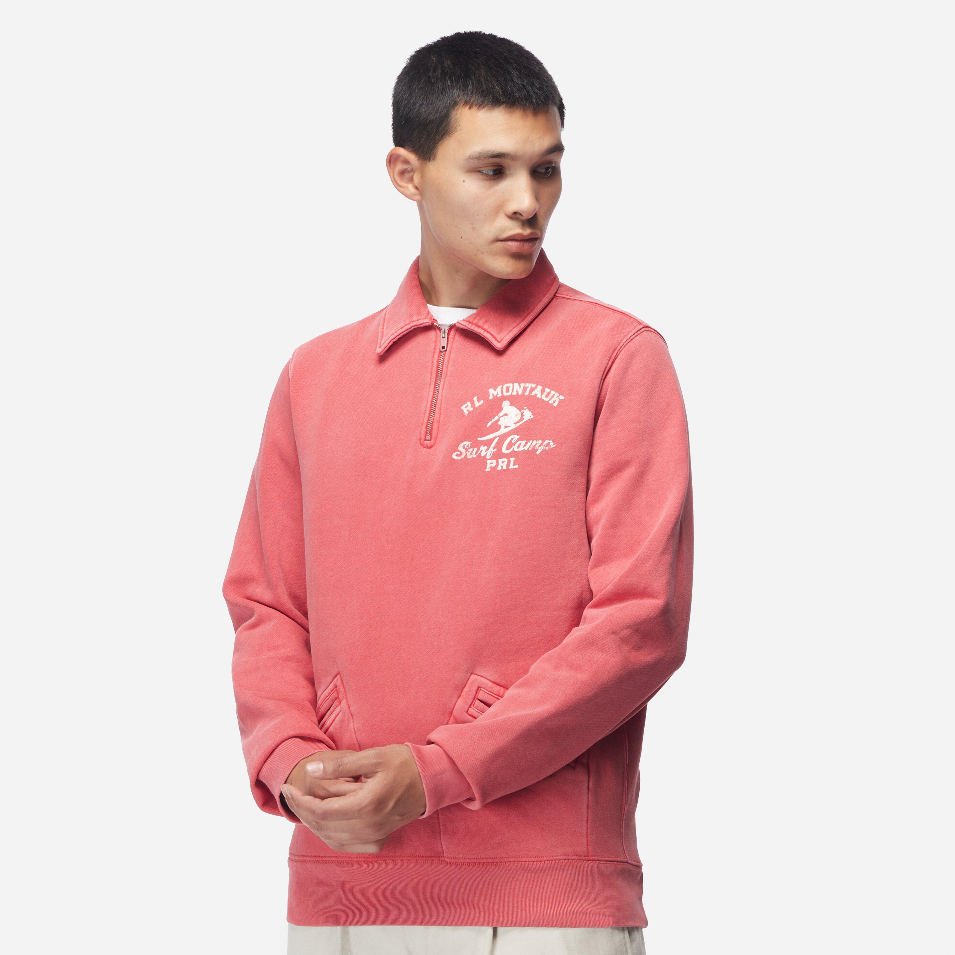 The retro theme continues with original Polo Ralph Lauren branding, specially treated to evoke a timeworn look. Red - 100% cotton/ polyester blend - Quarter zip - Ribbed trims - Lower pockets Printed artwork - Vintage wash - Regular fit, take your normal size - Model is 6'0" and wears a medium.