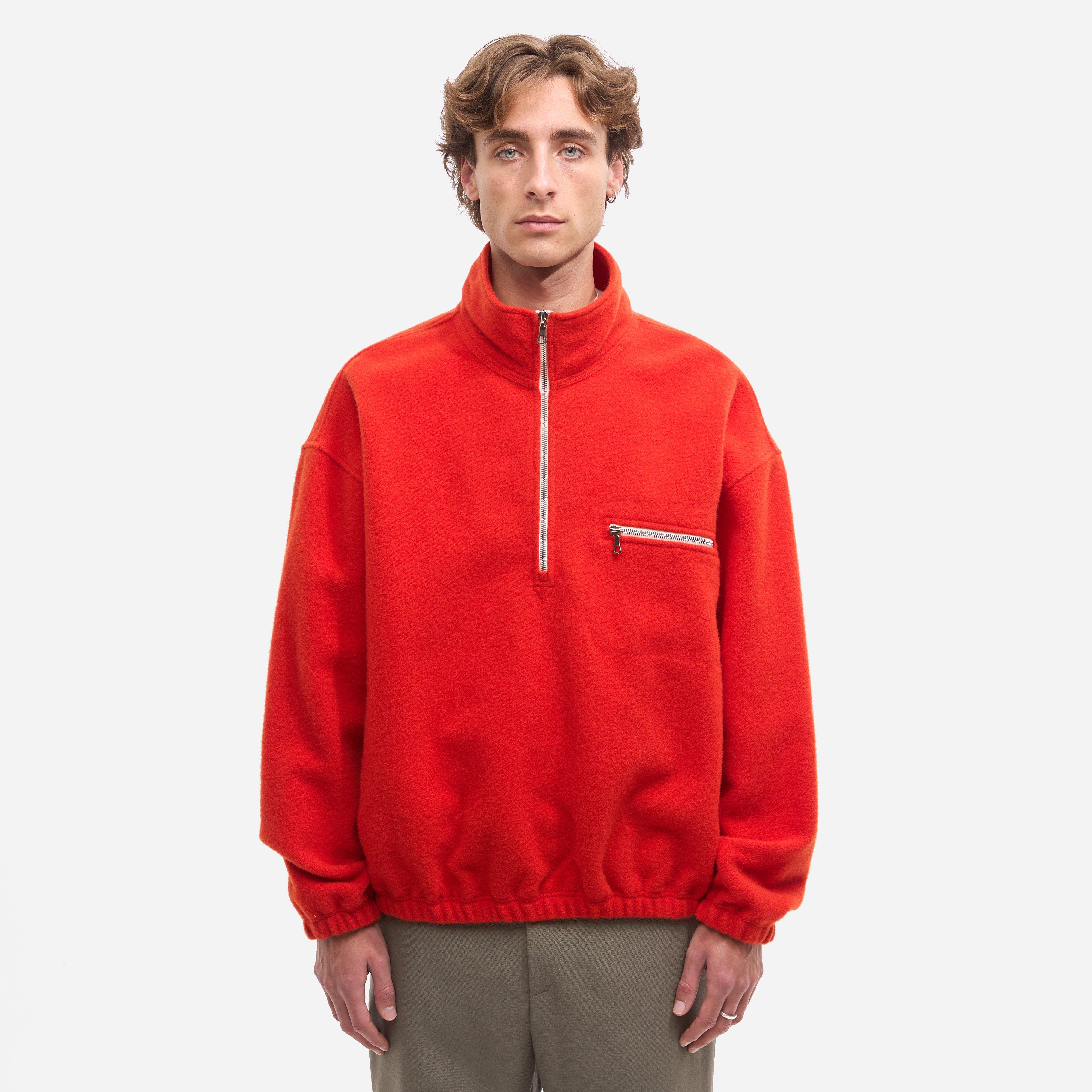 Orange - 100% natural wool - Metal zipper - Stand collar - Elastic cuffs & hem - Model is 5'11" and wears a size medium