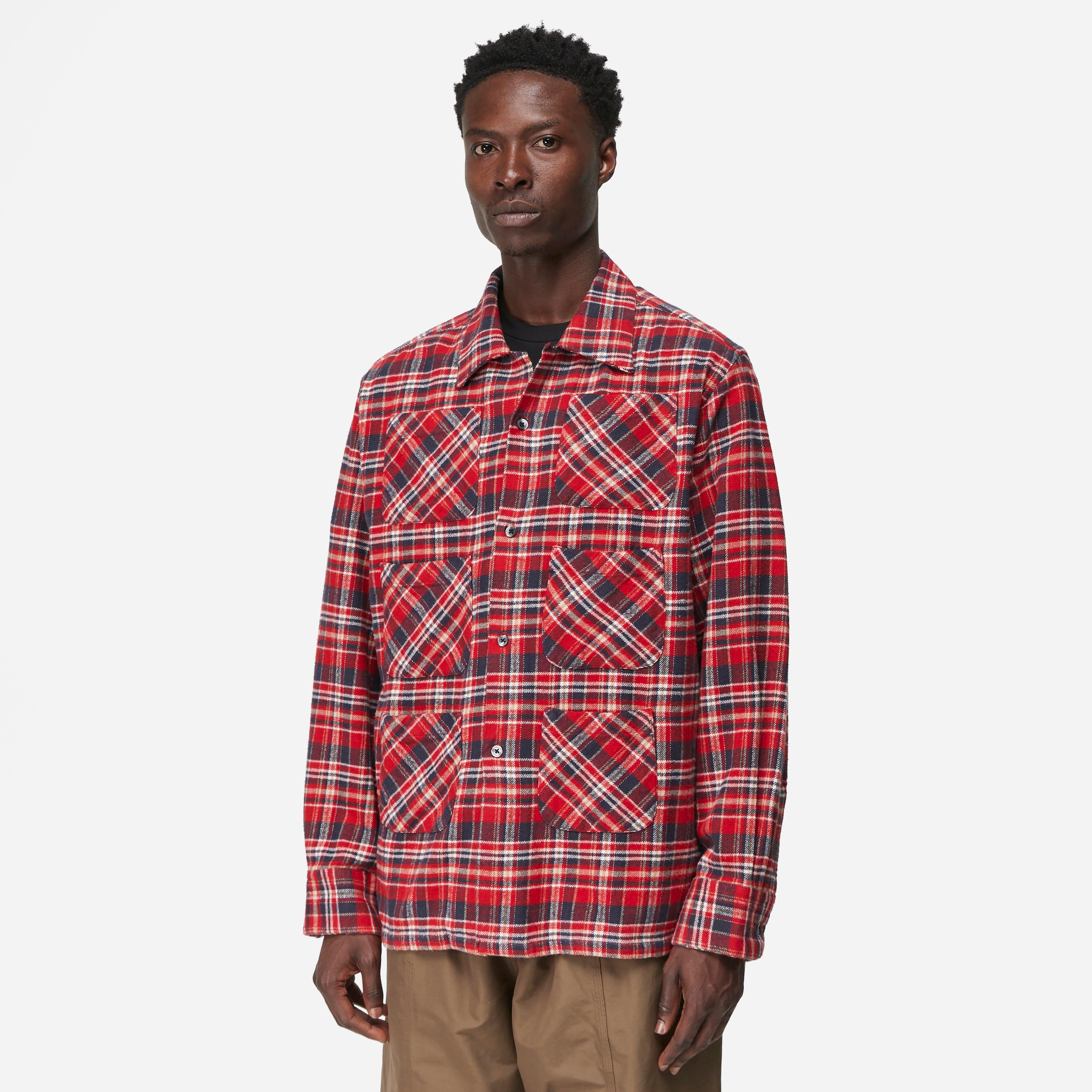 This Shirt adopts a soft flannel twill material - a richly textured fabric made in India and distinguished by six front pockets. Red - 100% cotton - Six front pockets - Button closure - Made in India - Relaxed fit, take your normal size - Model is 6'2" and wears a size medium.