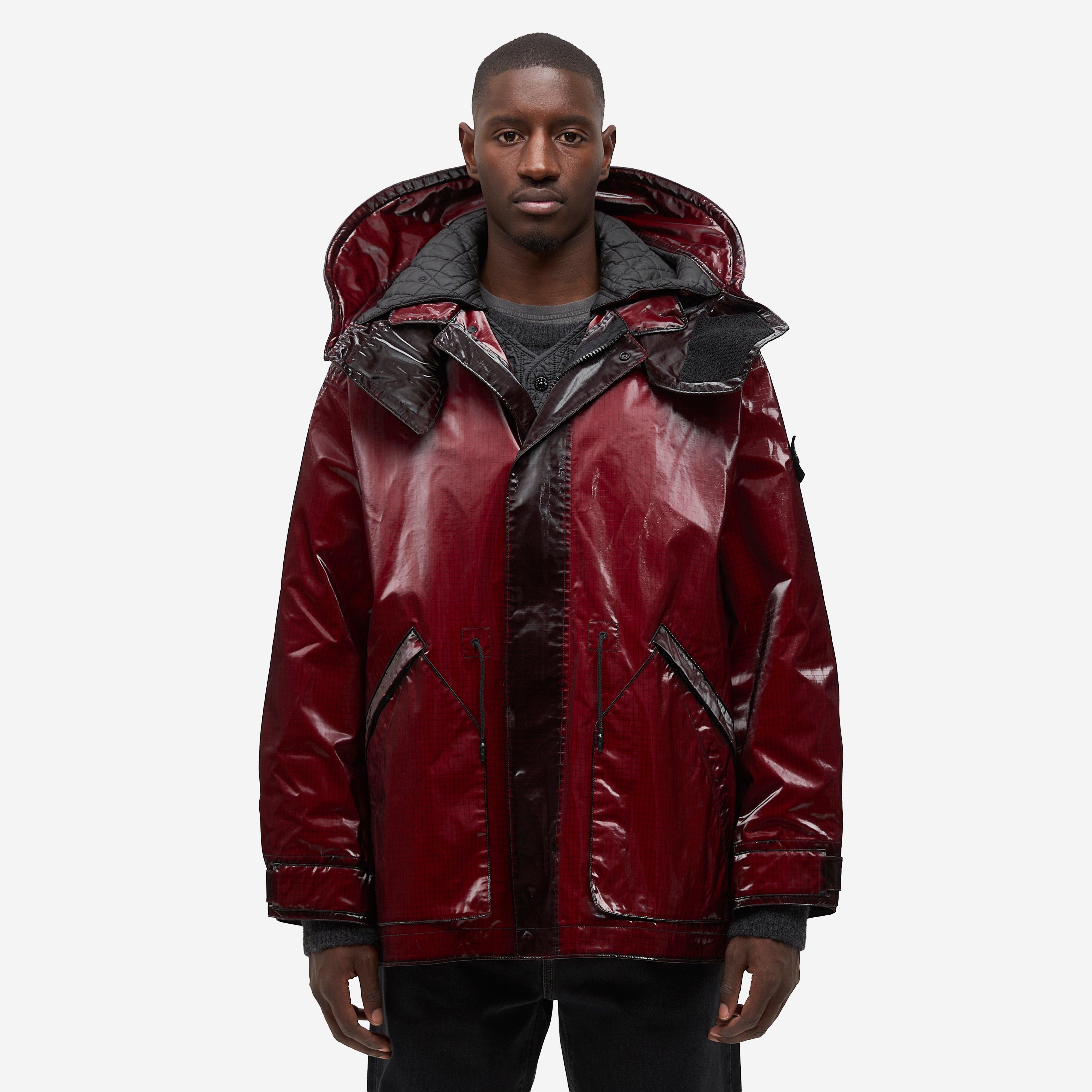The Uneven Ripstop Prismatico Short Hooded Parka is made from piece-dyed ripstop cotton that’s laminated with fine-grain polyurethane film. Burgundy – 92% cotton, 8% polyester – Padded detachable hood – Velcro geometric chin strap – Slanted hand pockets – Drawstring waist – Buttoned cuffs – Two way zip closure – Quilt detachable lining – Internal pocket – Compass embroidery – Compass badge – Model is 6'1" and wears a size medium