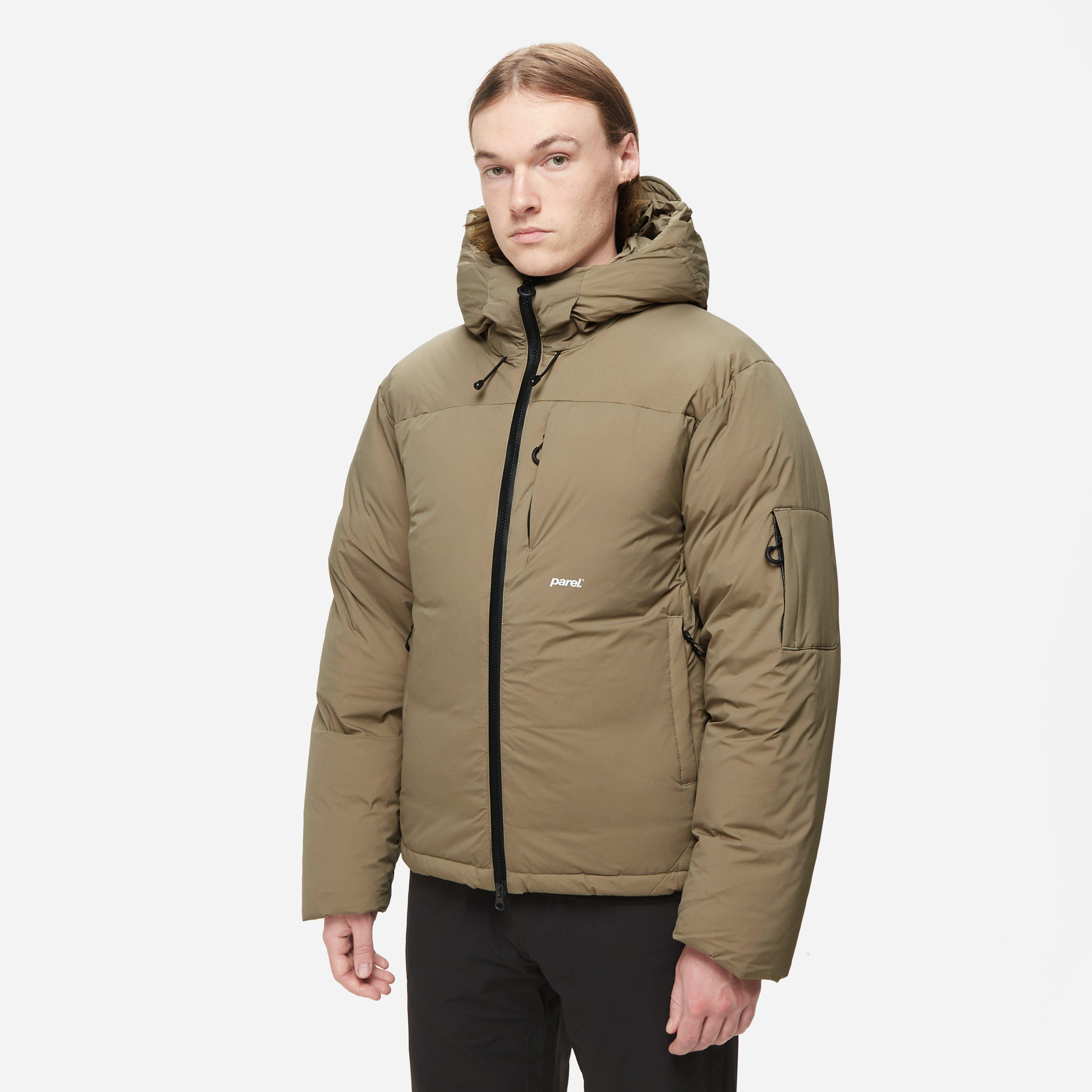 Sand - 100% nylon - Fill 90% Duck down, 10% feathers - 600-fill - Fleece lined pockets - DWR coated - Shoulder and chest pocket - Adjustable hood.