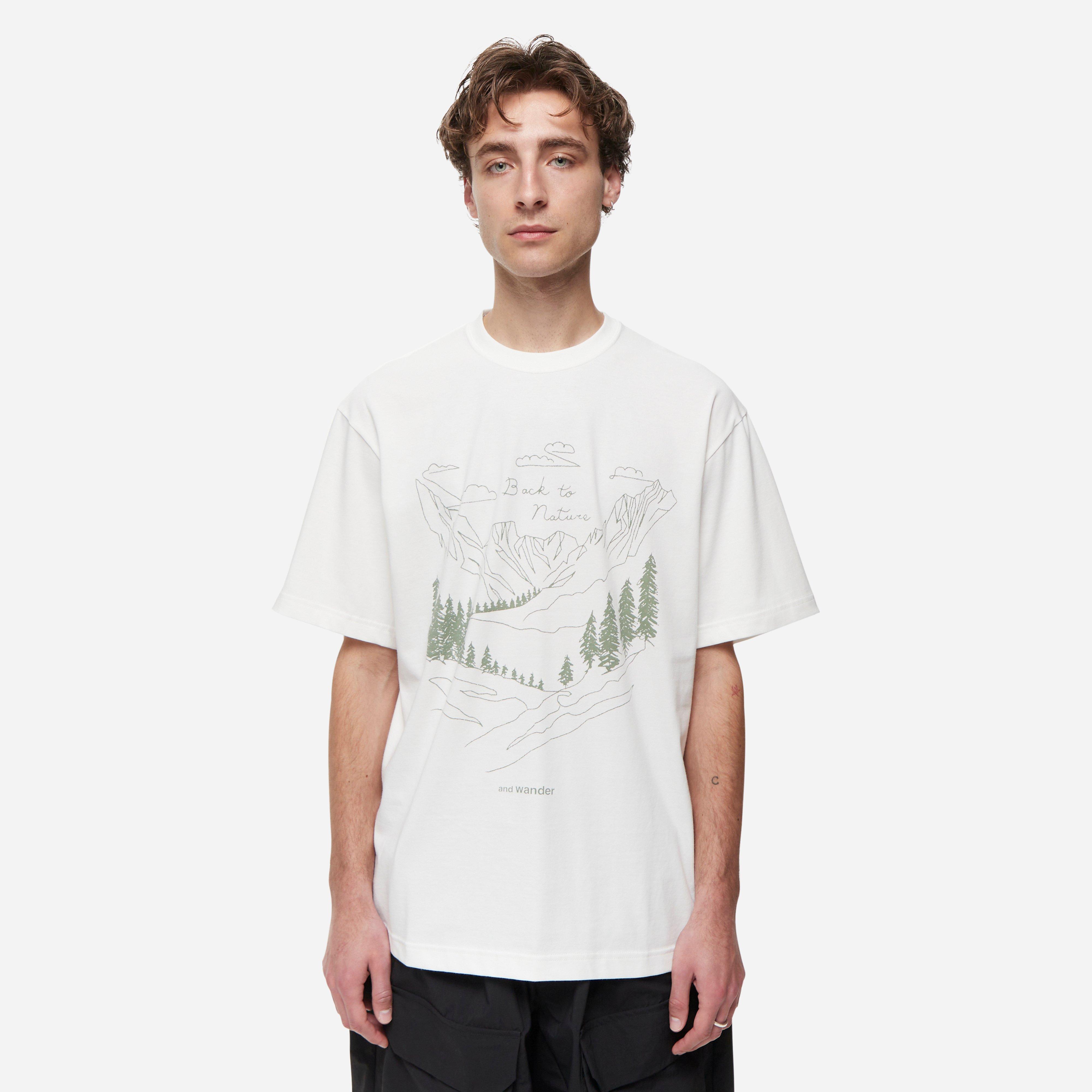 White - 65% cotton, 35% polyester - Crew neck - Printed graphic - Deodrant stitch - Model is 5'11" and wears a size medium