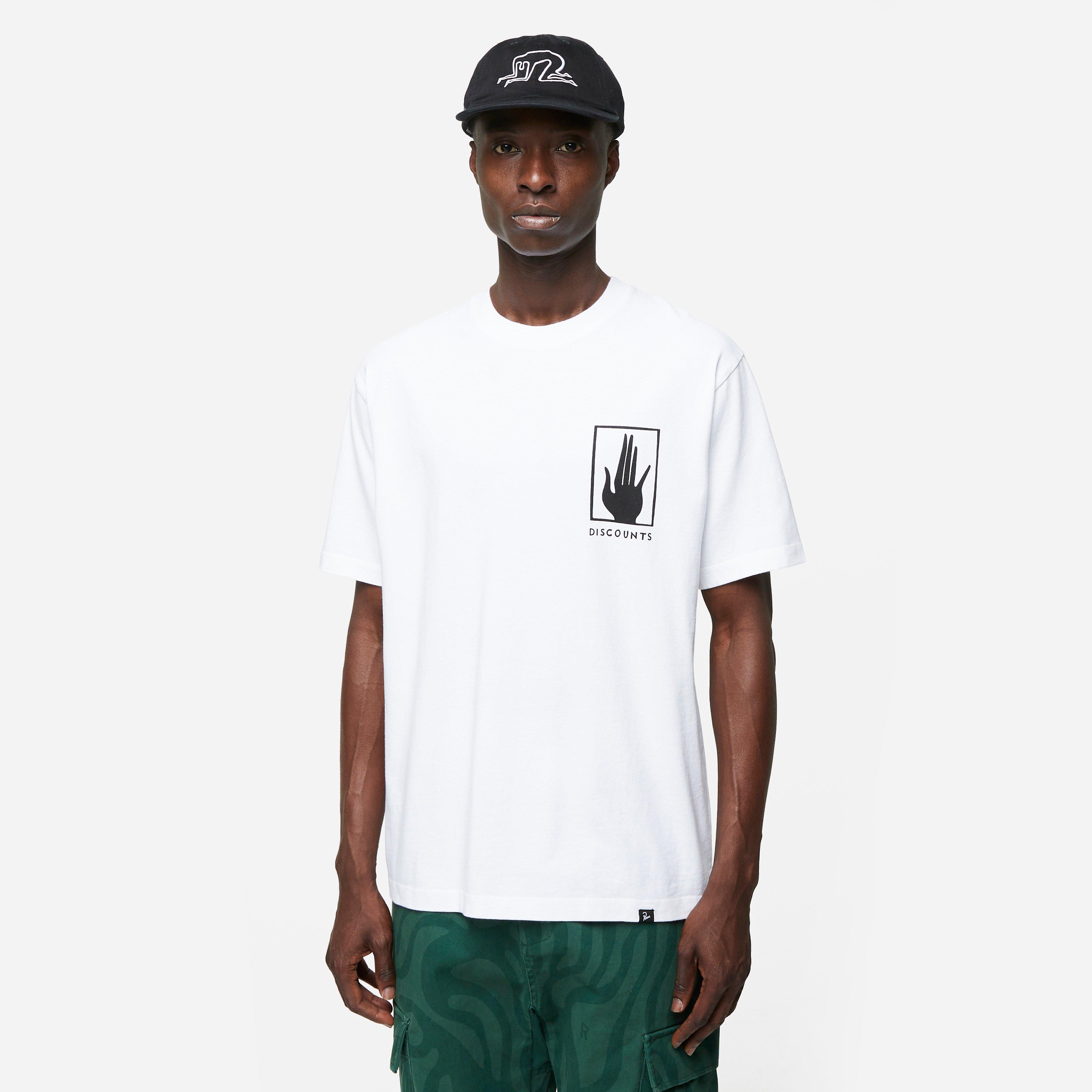 White – 100% cotton – Boxy fit – 240gsm fabric – Water based screenprint – Made in Portugal – Model is 6’2’’ and wears a size medium.
