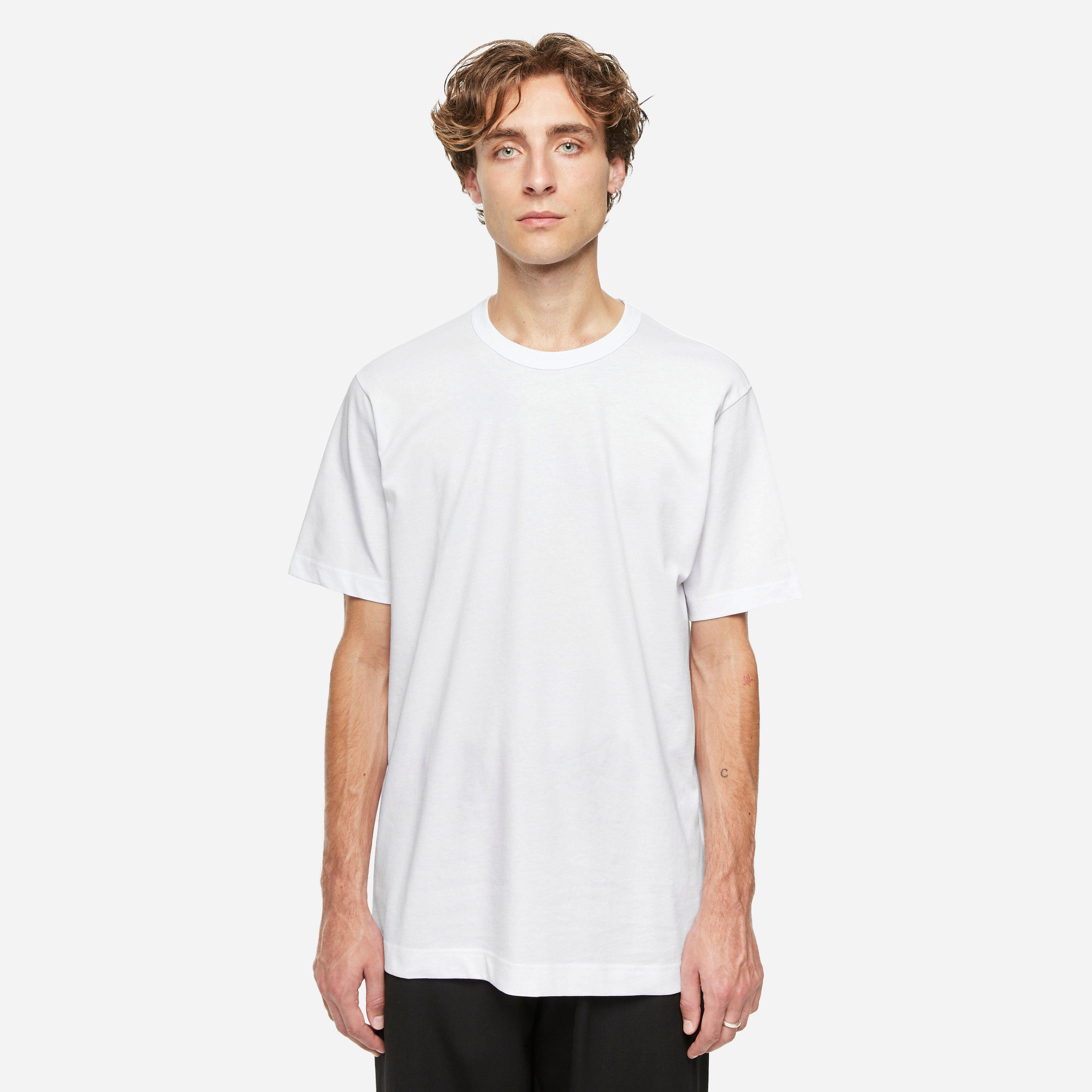 White - 100% cotton - Crew neck - Model is 5'11" and wears a size medium.