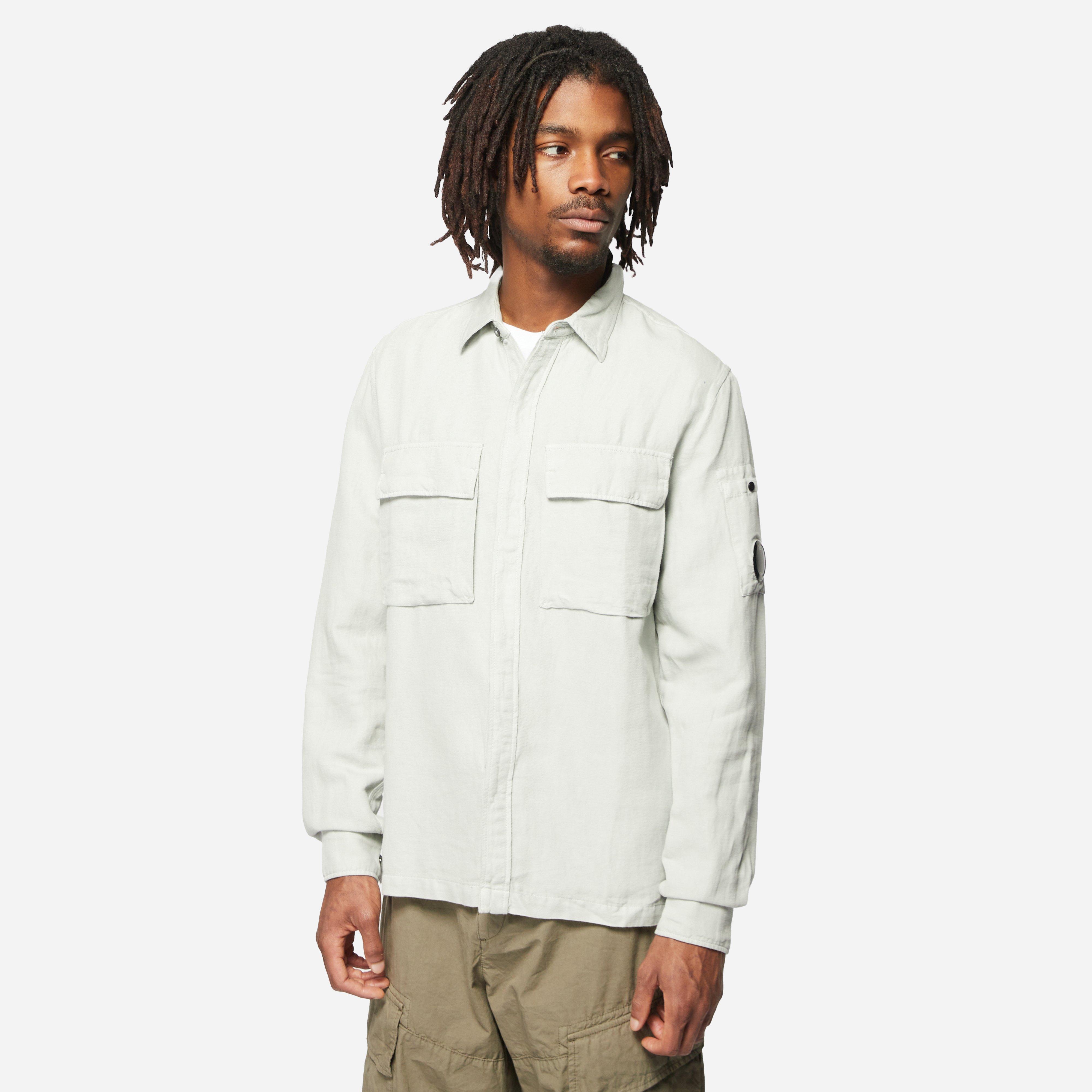 White - 51% cotton, 49% linen - 3 front pockets - Button closure - Adjustable cuffs - Garment dyed - Lens detail - Regular fit, take your normal size - Model is 6'0""" and wears a medium."