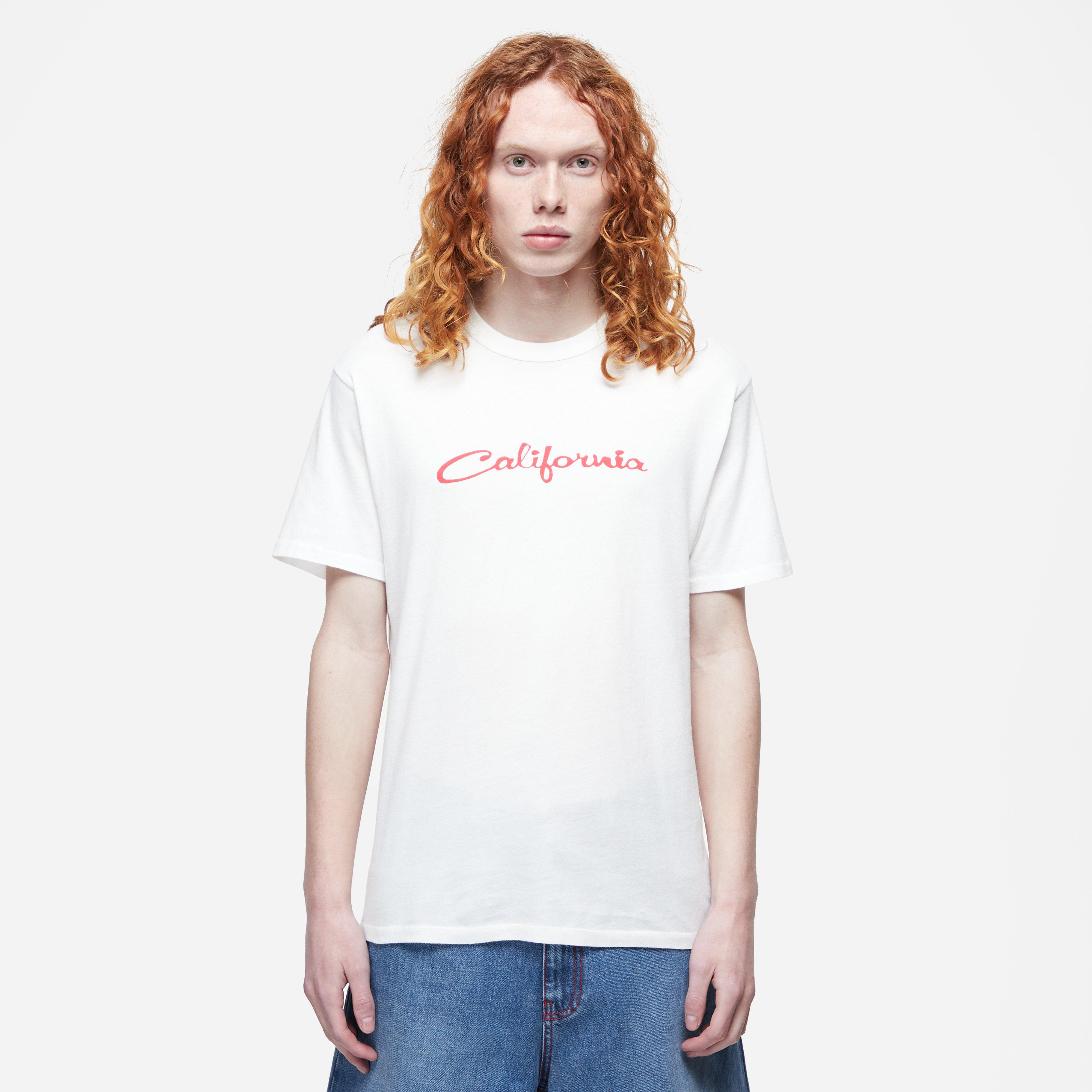 White – 100% cotton – Crew neck – Short sleeves – Raw cut finish – California print – Model is 6’1’’ and wears a size medium.