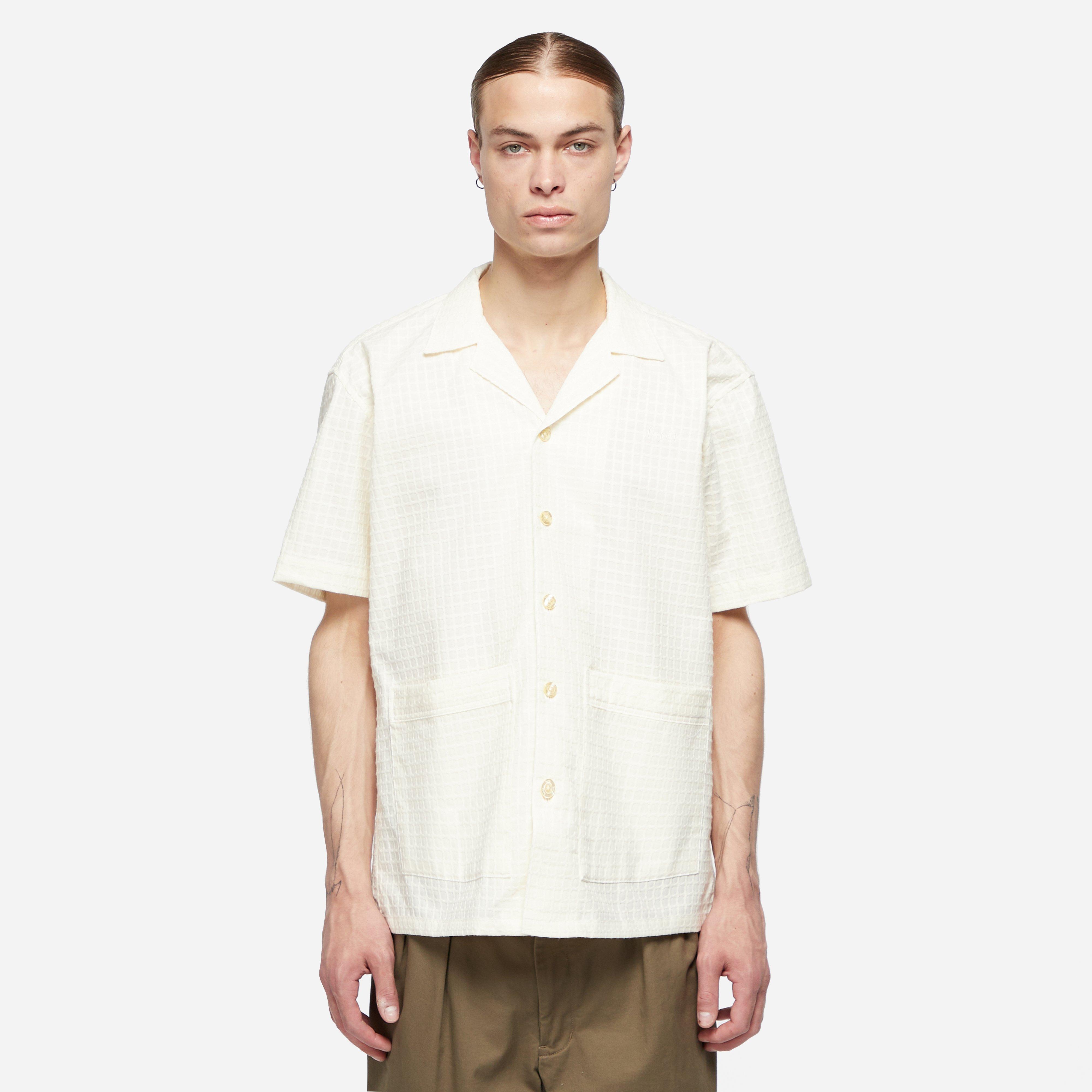 The Sway Shirt is made as a timeless summer staple enhanced by a beautiful jacquard fabric for a contemporary touch. Blue - 100% organic cotton - Jacquard fabric - Camp collar - Chest pockets - Relaxed fit, take your normal size - Model is 6'1" and wears a size medium."