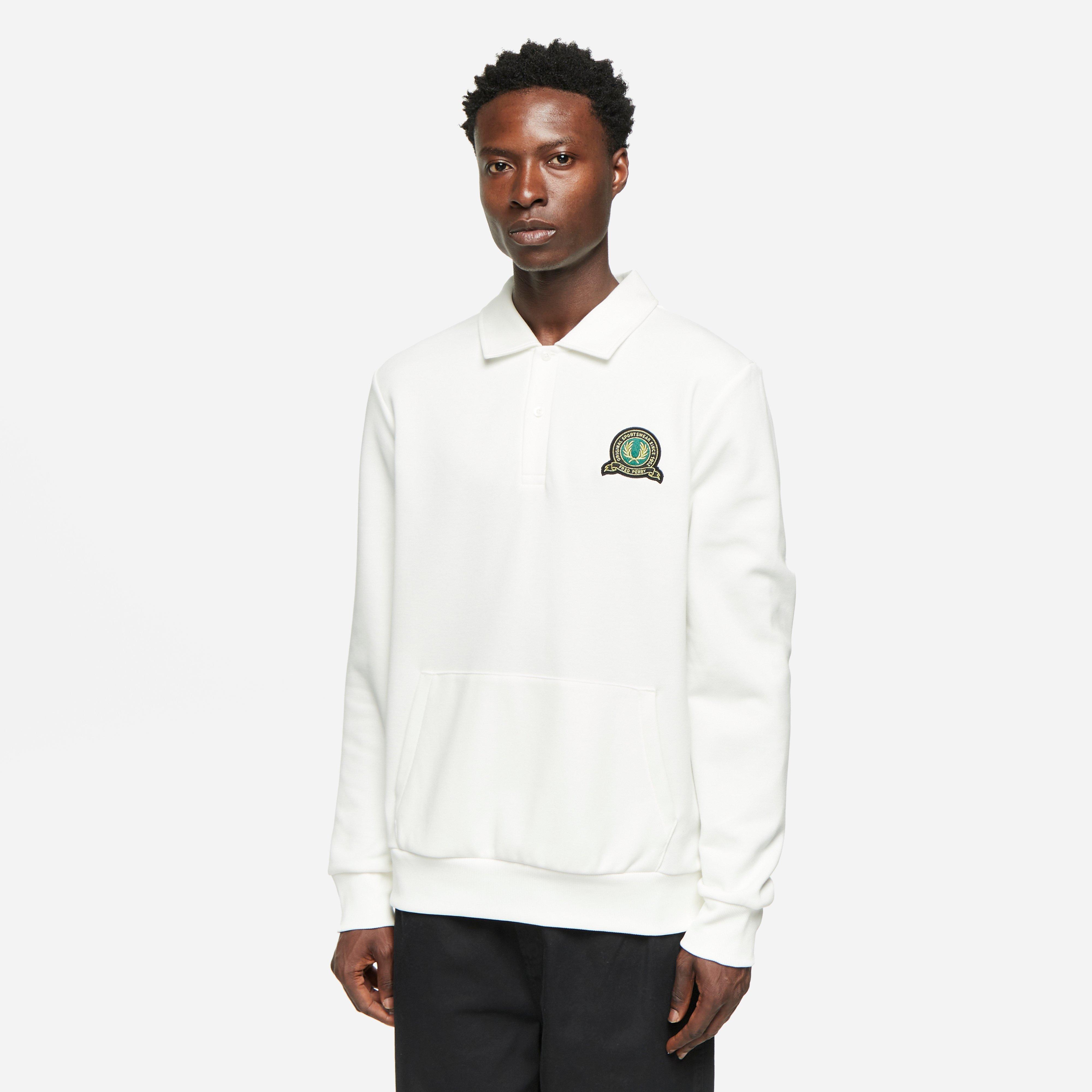 The curated capsule is a homage to tennis club leisurewear and features elevated garments that take inspiration from archive '70s designs. White - 72% cotton, 28% recycled polyester - Fleece backed - 2 button placket - Ribbed trims - Embroidered Fred Perry tennis badge - Regular fit - Model is 6'2" and wears a size medium.