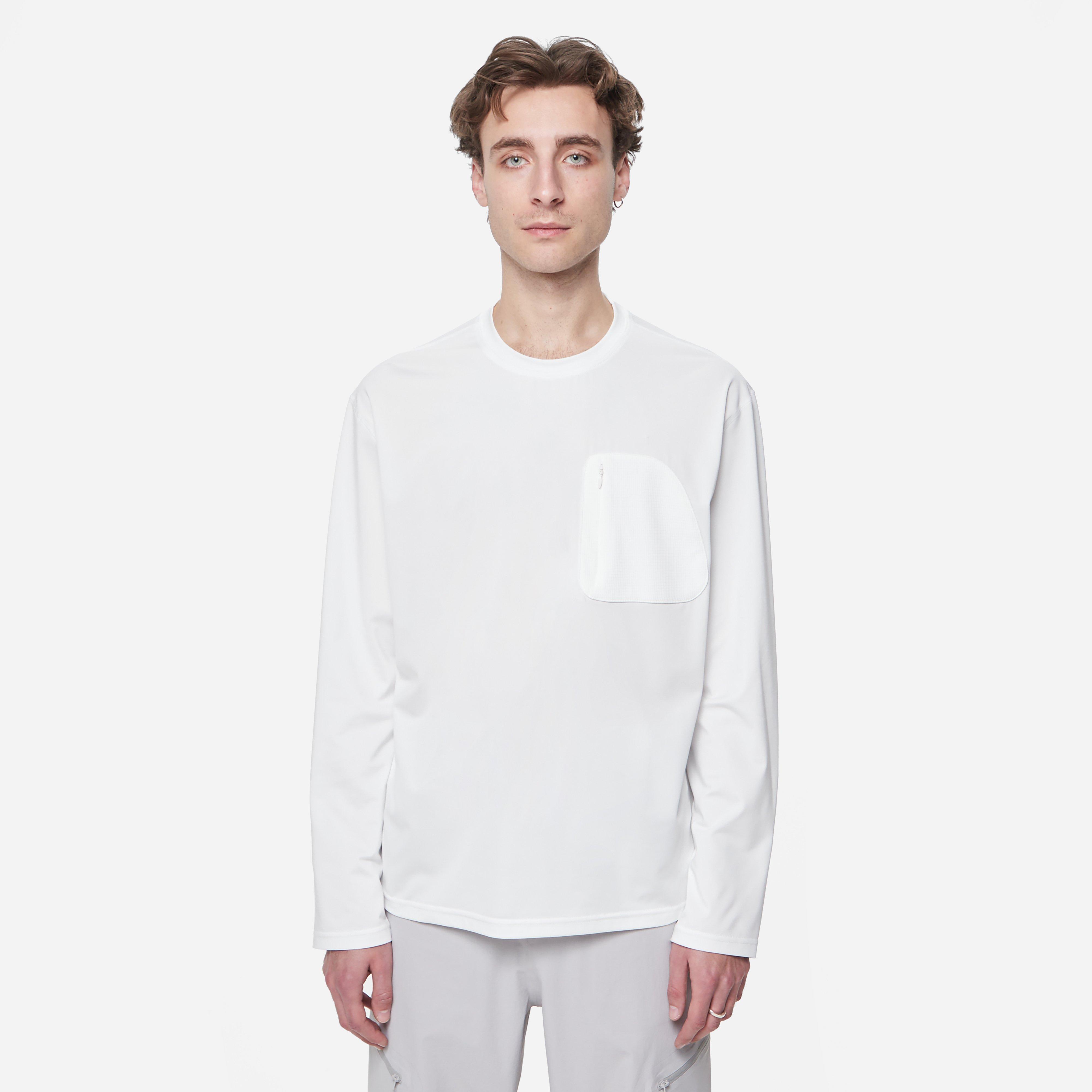 The collection symbolises a shift from the warmer seasons, embracing dynamic evolution in style and expression. It highlights the brand’s adaptability and connection to the rhythms of nature. White - 90% polyester, 10% spandex - Regular fit - Stretch ripstop knit on side seam - Chest pocket with YKK zip - Model is 5'11" and wears size medium.
