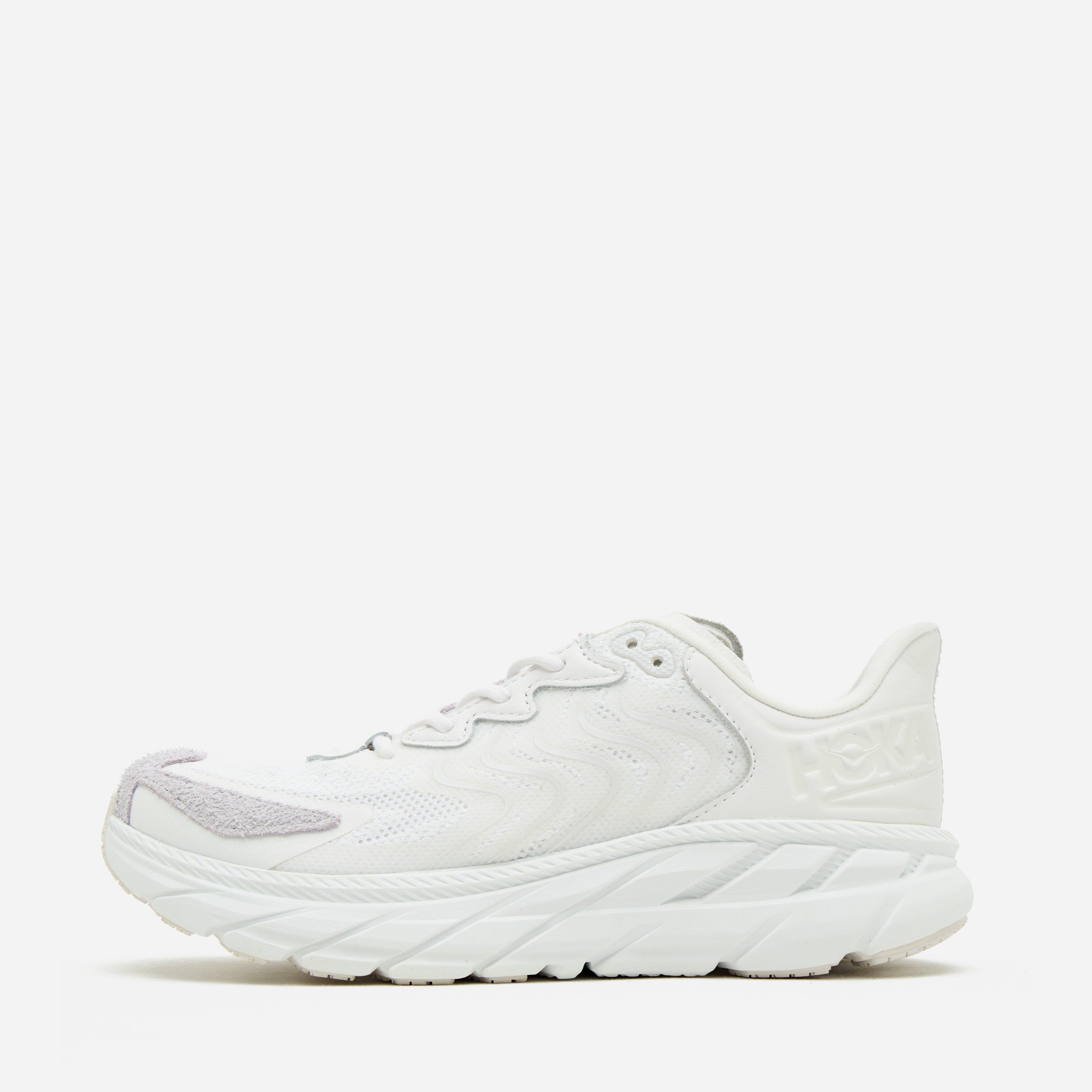 The Clifton LS is re-designed with pebbled leather, textured suede, and streamlined laces to effortlessly fit across sport and downtime. White - Jacquard, pebbled leather and suede upper, dubabrasion rubber outsole - 321g - Compression molded EVA midsole - Padded performance collar - Lug: 5mm - Regular fit, take your normal size.