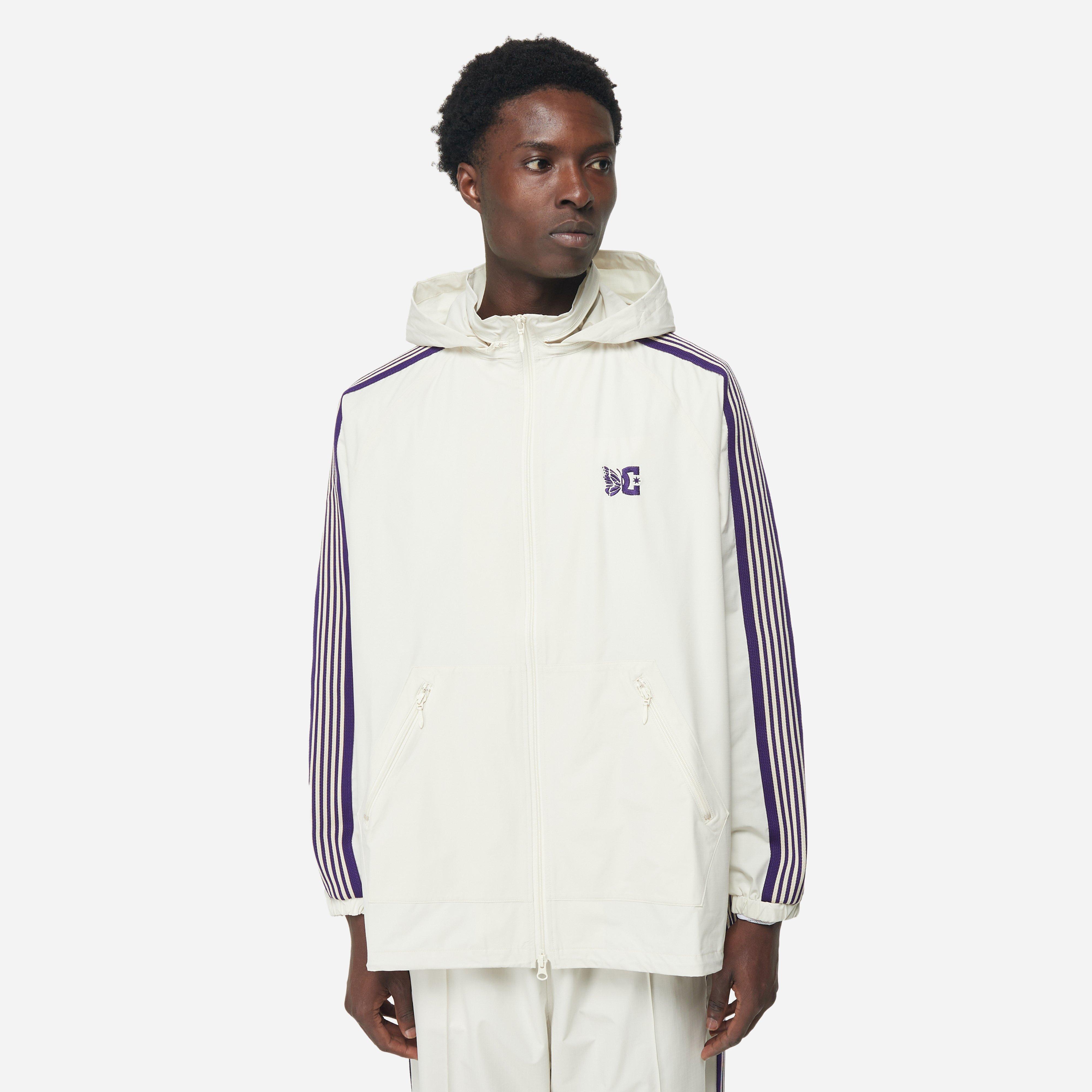 White - 100% polyester ripstop - 2-way zip up - Zip front pockets - Elastic cuffs - Stow-away hood - Adjustable hem - Embroidered branding - Made in Japan - Loose fit, take your normal size - Model is 6'1" and wears a size medium.