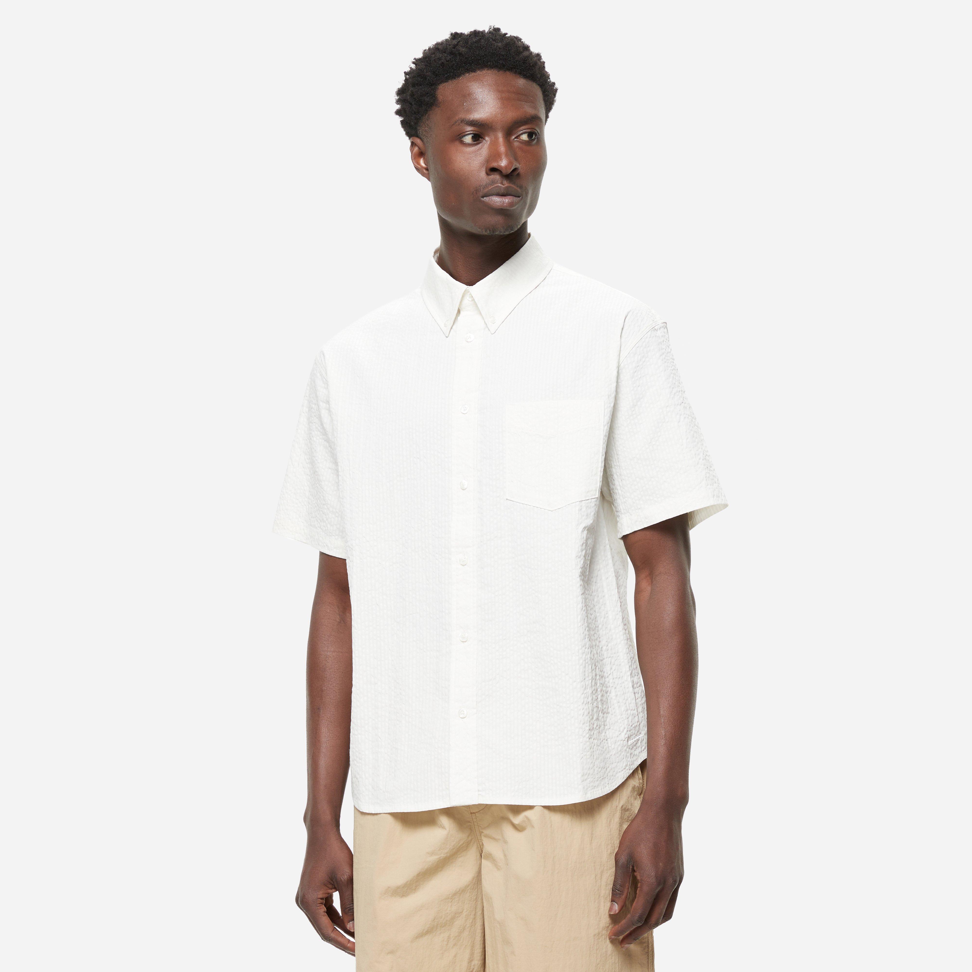White – 72% cotton/13% nylon/13% polyester/2% elastane – Puckered texture – Chest pocket – Curved hem – Swoosh embroidery – Model is 6’2’’ and wears a size medium.